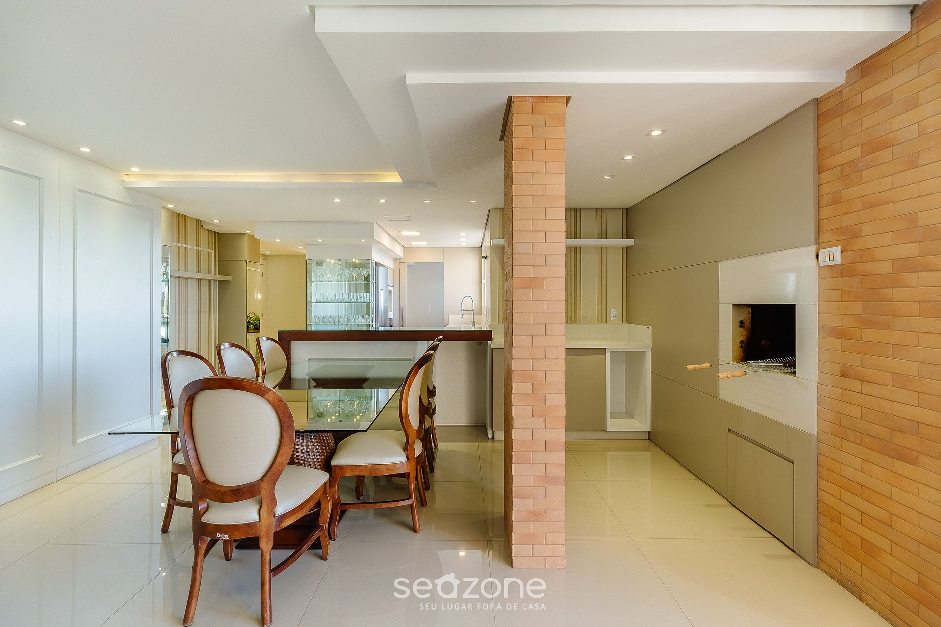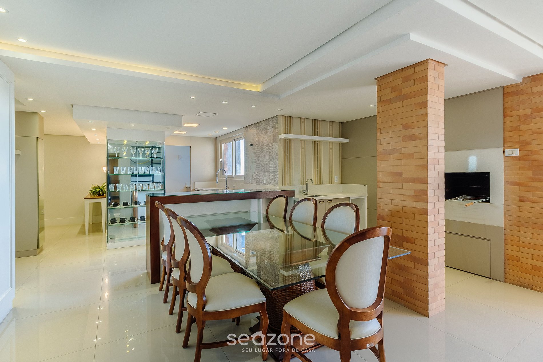 - Espaço para jantar com mesa e 7 cadeiras;