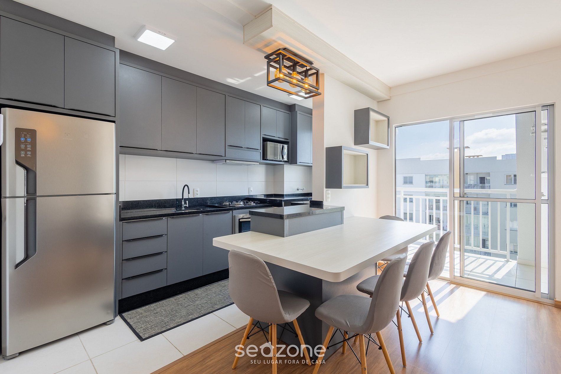 - Cozinha completa com geladeira, fogão cooktop (a gás), sanduicheira, microondas, forno elétrico, chaleira comum, cafeteira elétrica, liquidificador, taças de vinho, panelas, louças e utensílios;