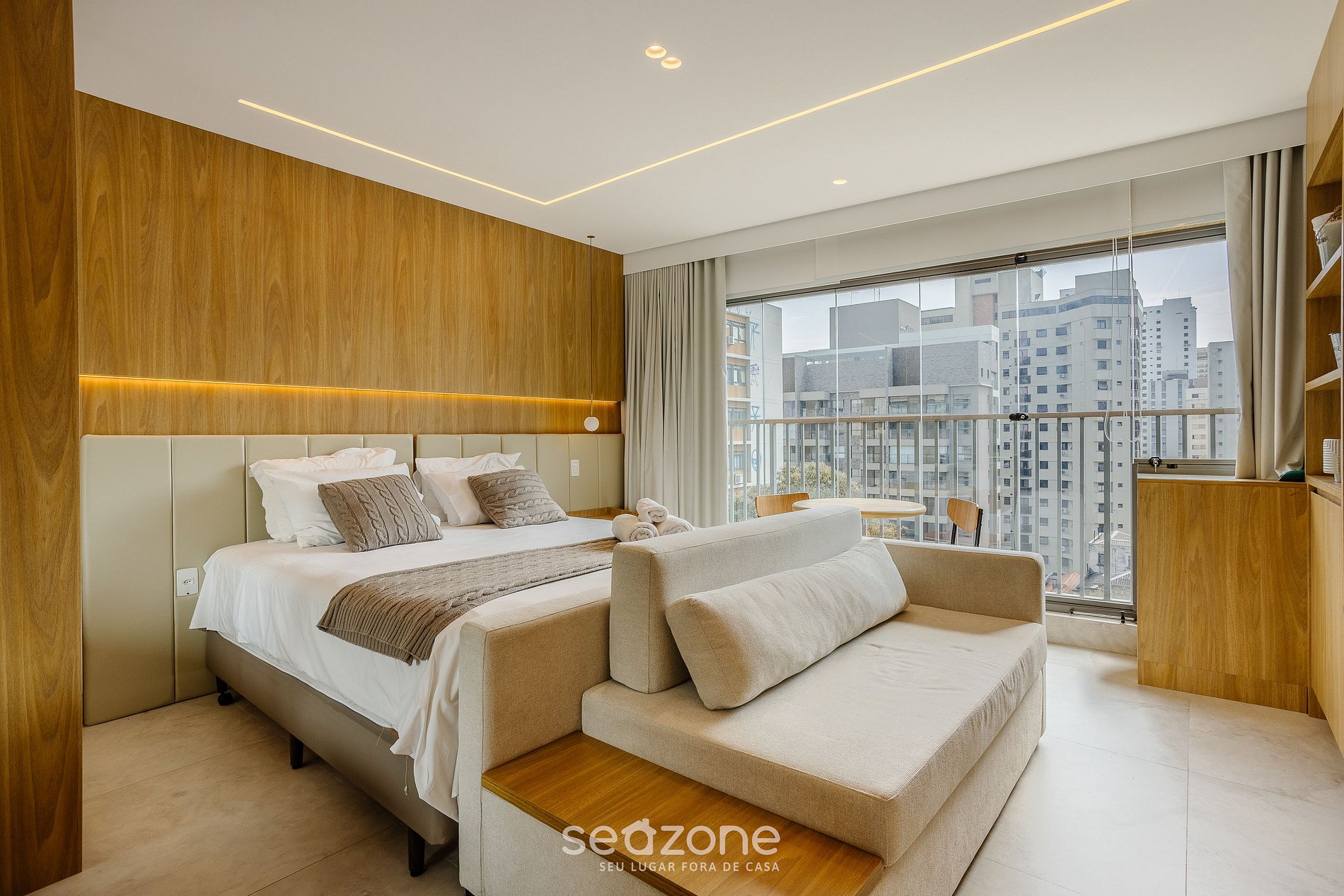 - Roupas de cama e banho de qualidade hoteleira (roupas de cama e toalhas extras são cobrados pela Seazone);