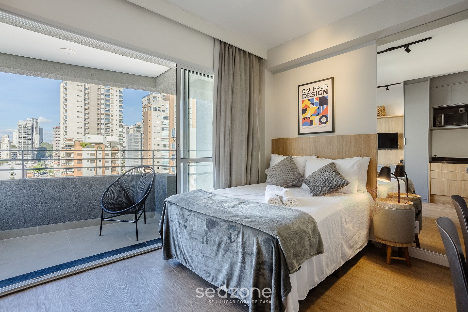 - Roupas de cama e banho de qualidade hoteleira (roupas de cama e toalhas extras são cobrados pela Seazone);