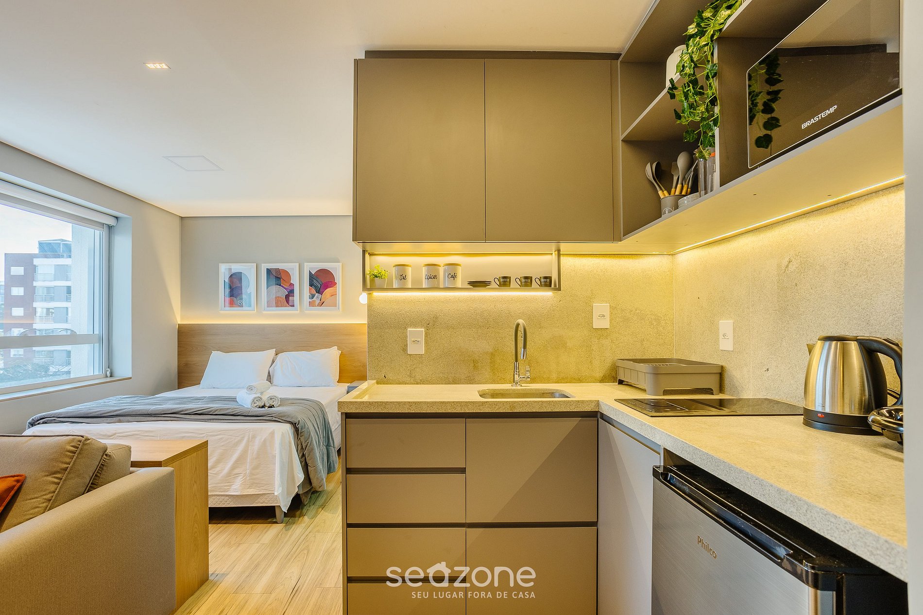 - Roupas de cama e banho de qualidade hoteleira (roupas de cama e toalhas extras são cobrados pela Seazone);