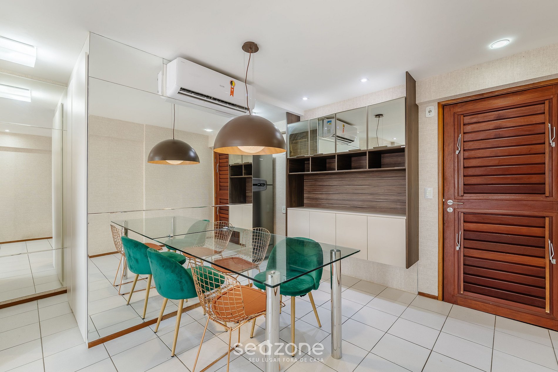- Espaço para jantar com mesa e cadeiras;