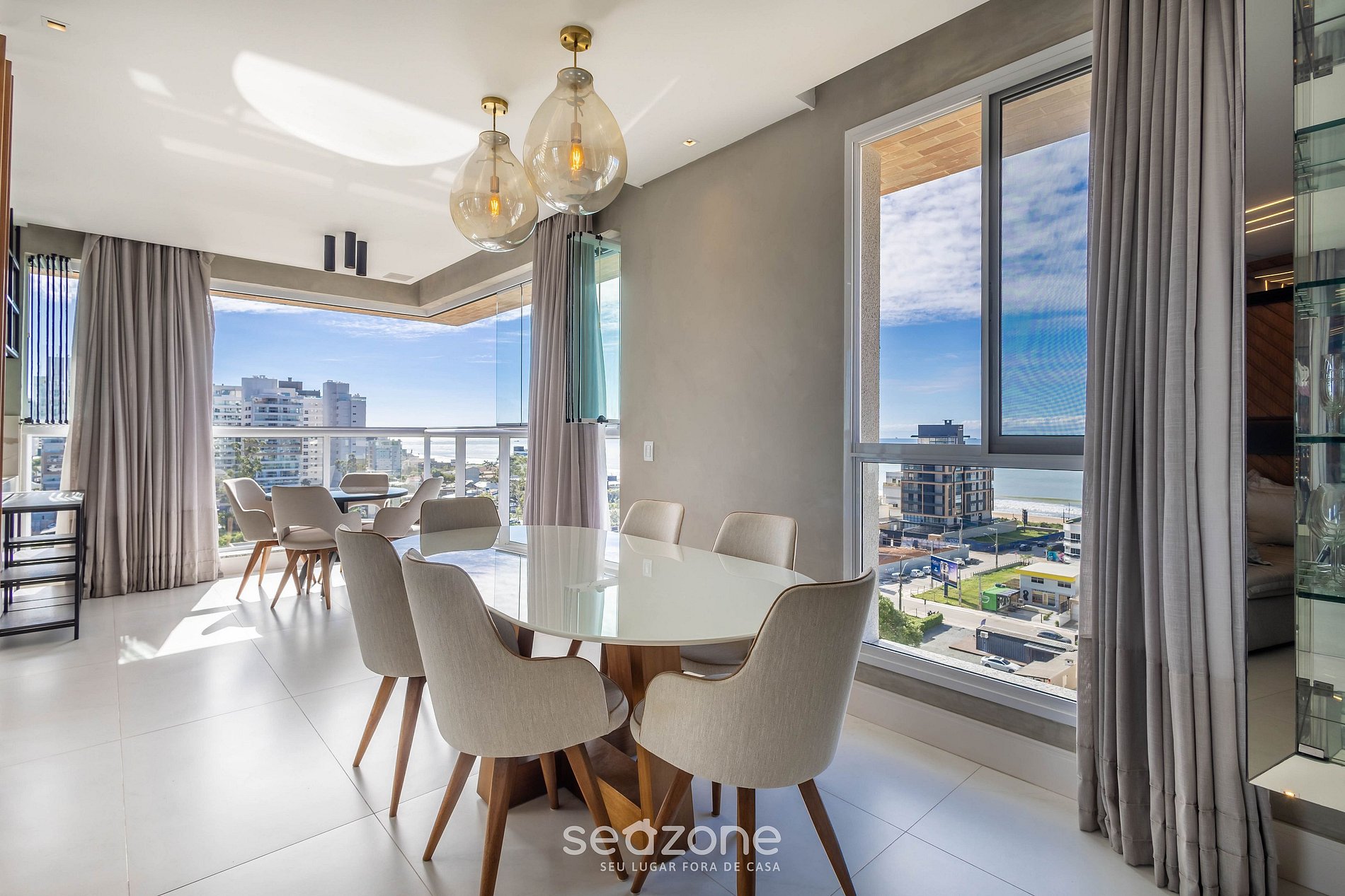 - Roupas de cama/banho e limpeza extras são solicitadas e pagas à parte, direto com a Seazone;