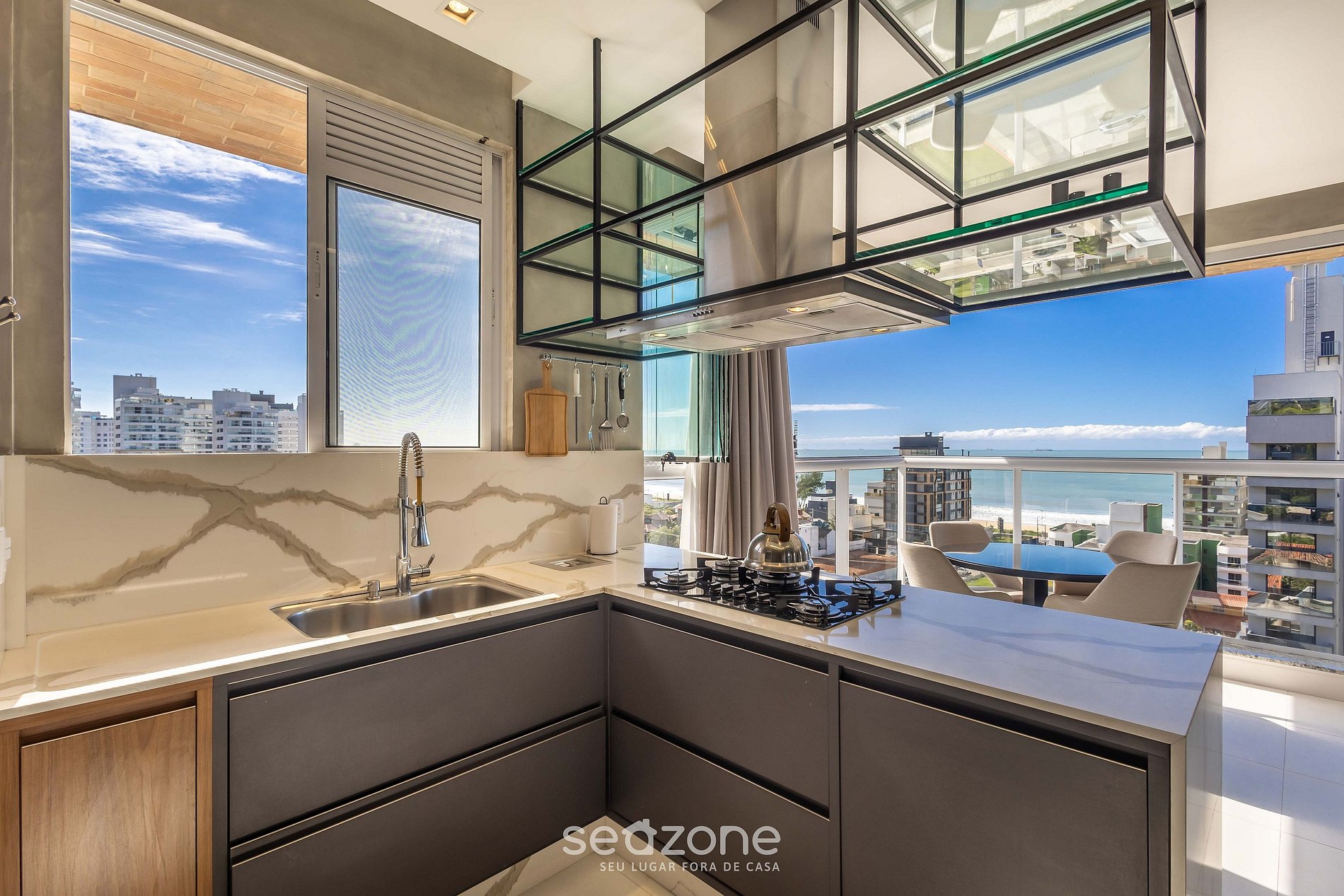 - Área com vista para o mar e churrasqueira gourmet;