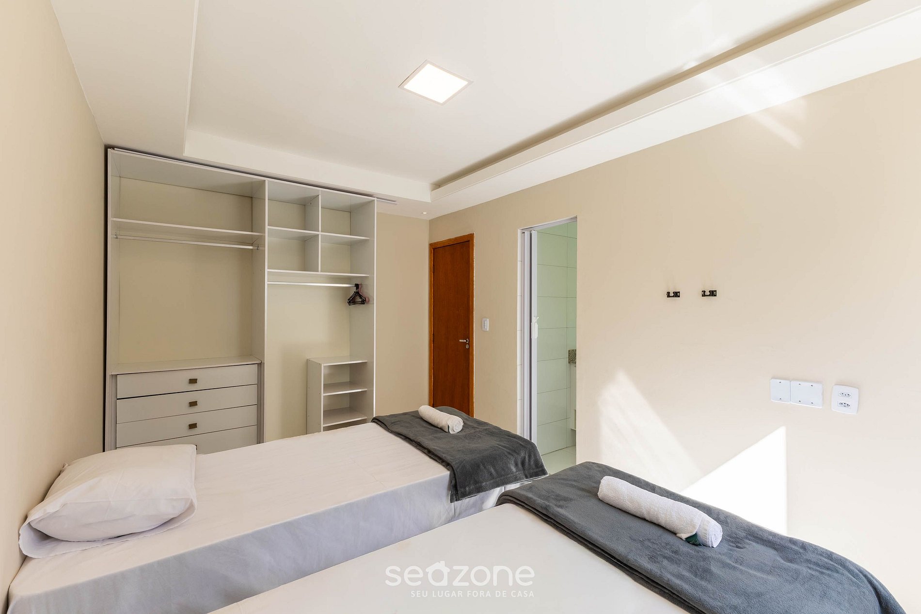 - 1 Suíte com 2 Camas de Solteiro, arara para roupas e armário e ar-condicionado;
