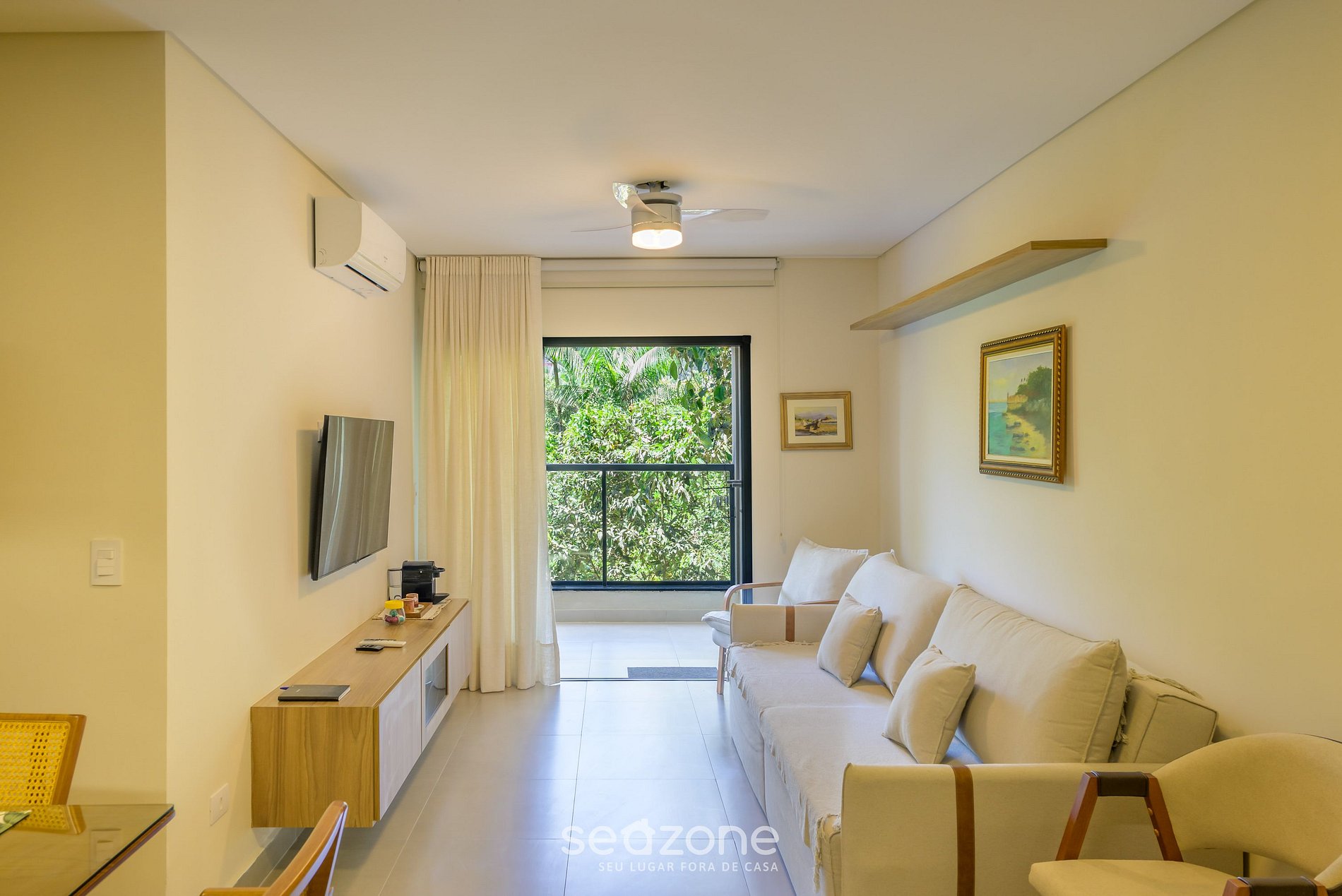 - Sala de estar com sofá-cama de casal, Smart Tv, ventilador de teto e ar-condicionado;