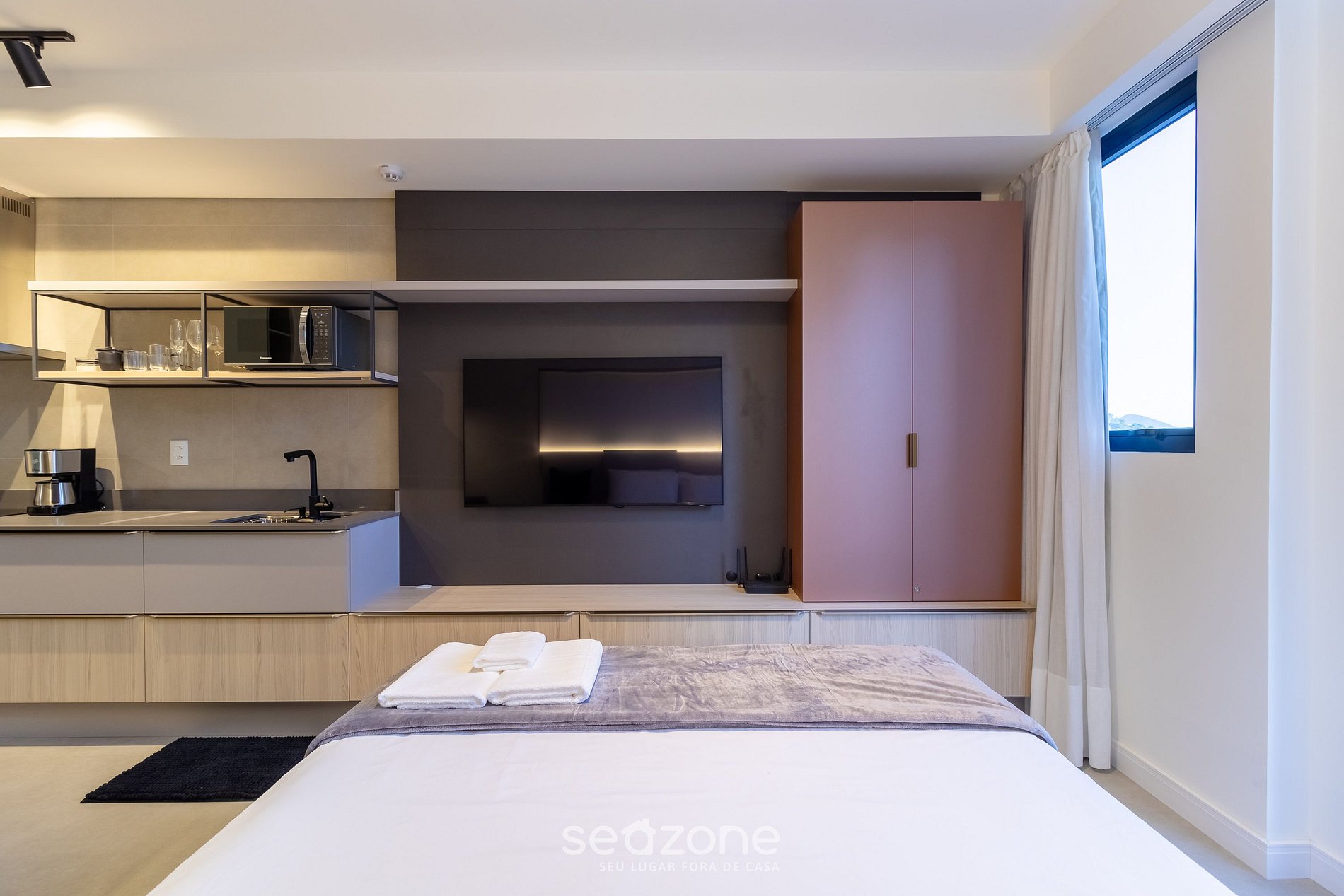 - Roupas de cama e banho de qualidade hoteleira (roupas de cama e toalhas extras são cobrados pela Seazone);