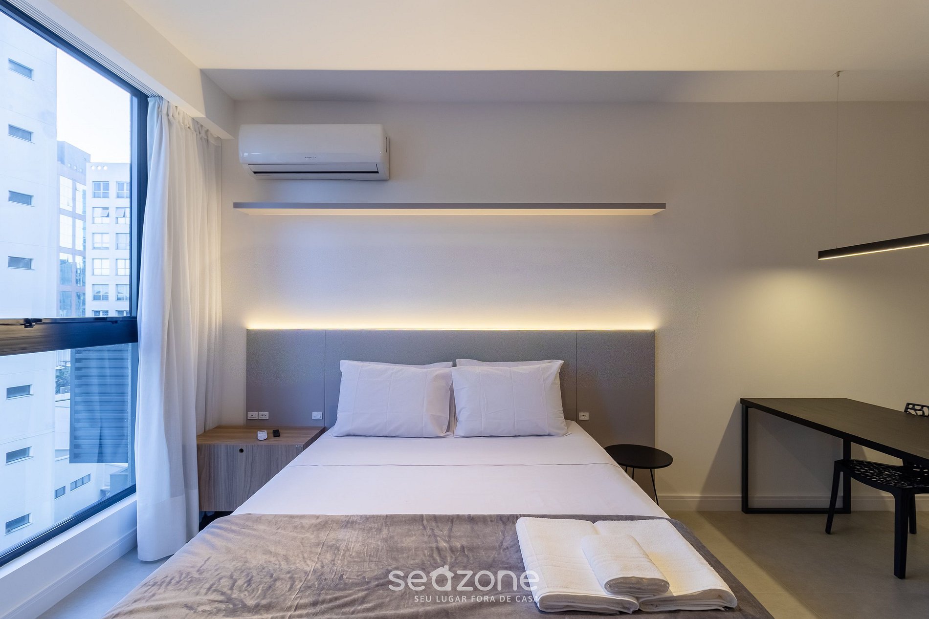 - Roupas de cama e banho de qualidade hoteleira (roupas de cama e toalhas extras são cobrados pela Seazone);