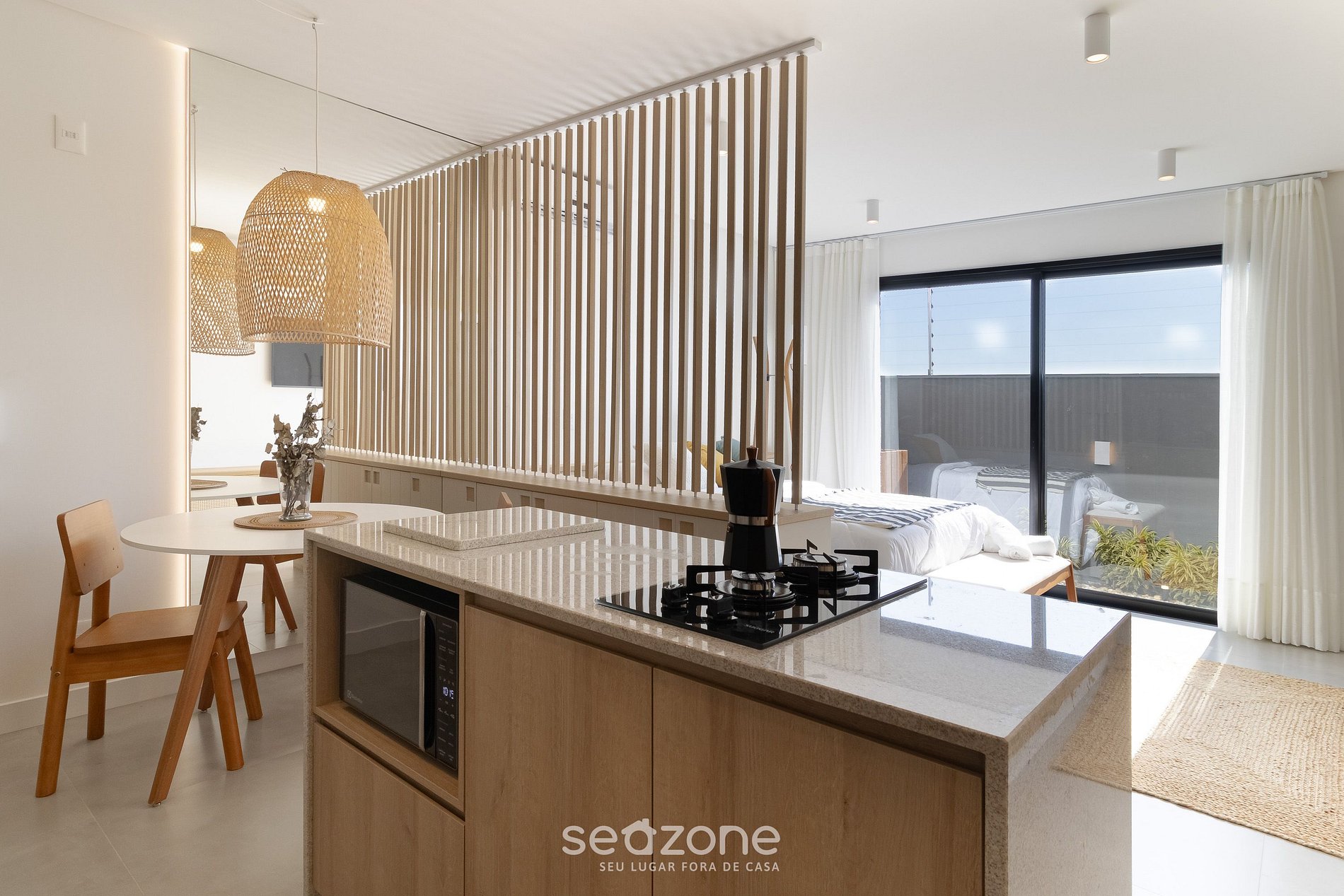 - Roupas de cama e banho de qualidade hoteleira (roupas de cama e toalhas extras são cobrados pela Seazone);