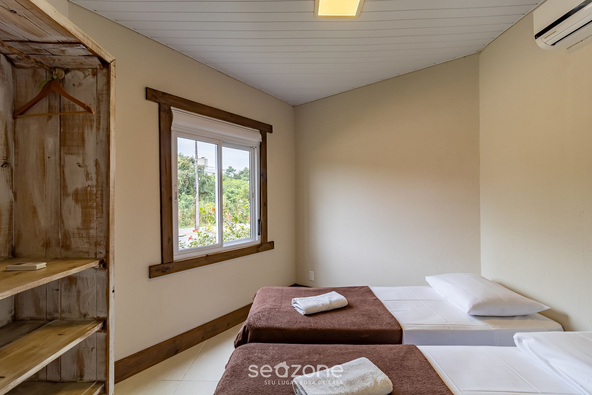 - 1 quarto com cama de casal (possível converter em 2 camas de solteiro), armário e ar condicionado;