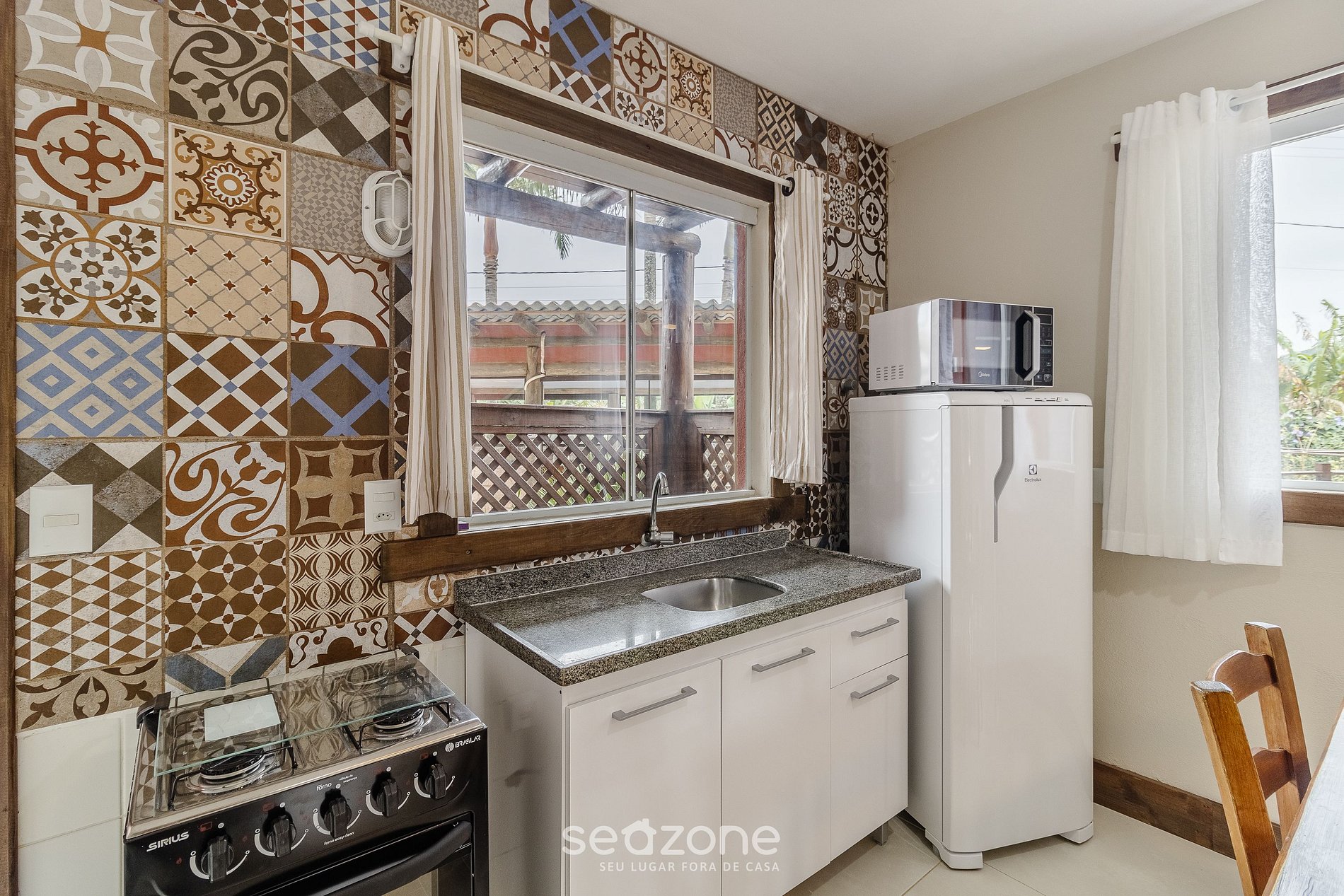 O duplex é equipado com cozinha completa, sala de estar e de jantar, em espaço aberto, dois quartos com cama queen size e uma linda vista da mata nativa.