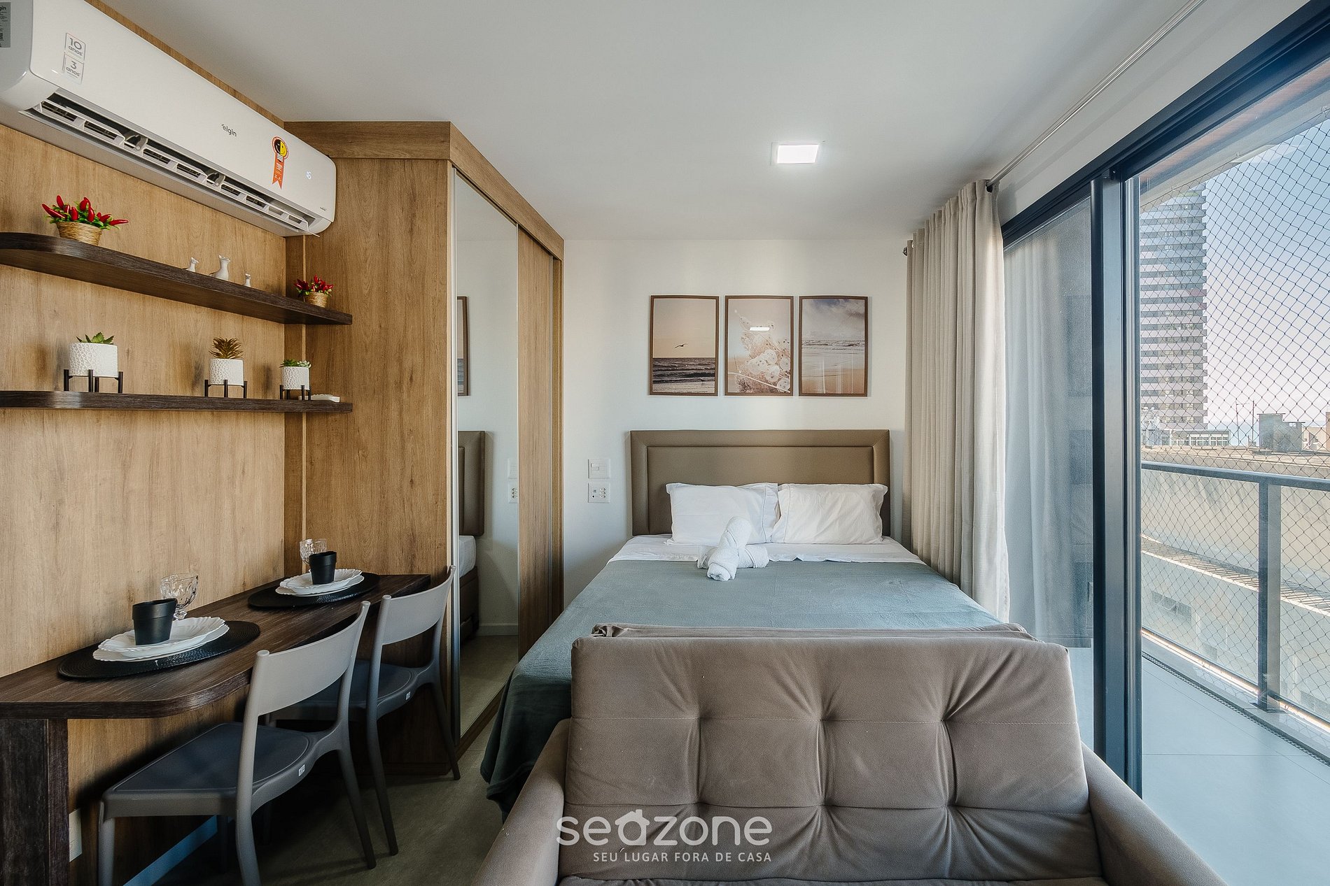 - Roupas de cama e banho de qualidade hoteleira (roupas de cama e toalhas extras são cobrados pela Seazone);