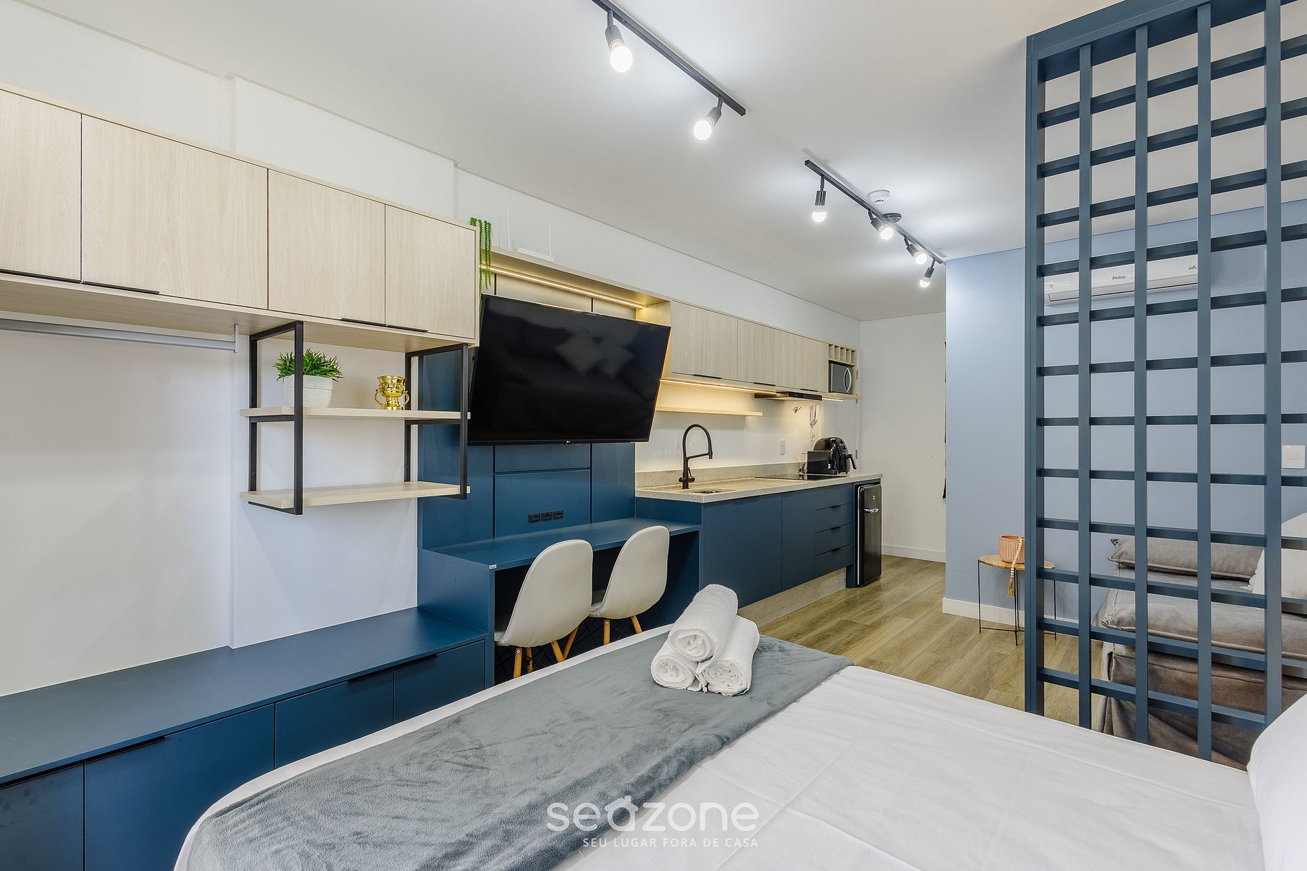 - Roupas de cama e banho de qualidade hoteleira (roupas de cama e toalhas extras são cobrados pela Seazone);