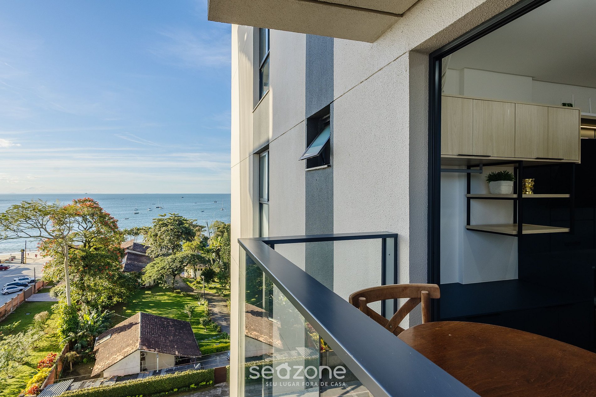 - Varanda agradável com vista lateral para o mar;