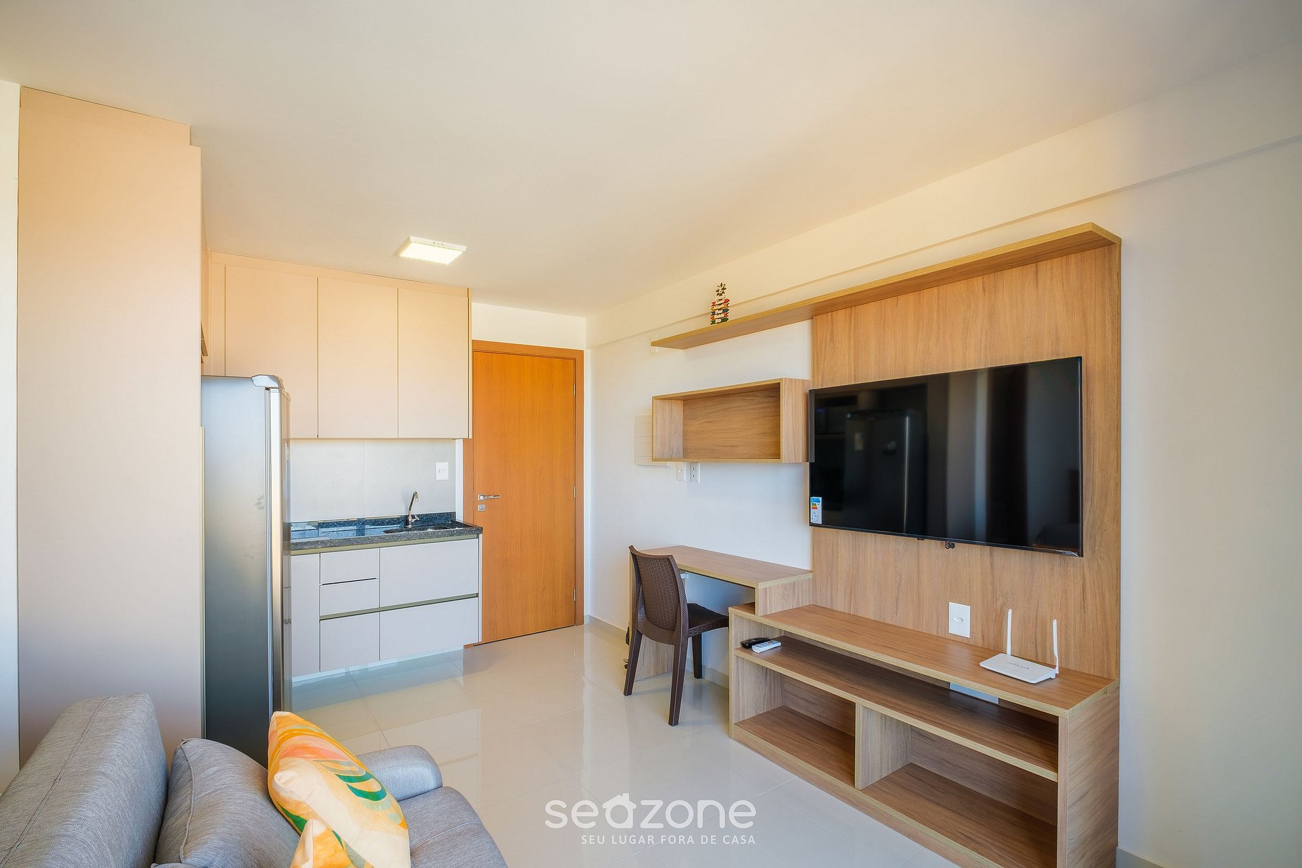 Localizado em Itapuã, Salvador, oferece um ambiente completo com cama de casal, sofá-cama, Smart TV e ar-condicionado. A cozinha totalmente equipada e a varanda convidativa garantem uma experiência única. Aproveite áreas comuns como piscina, academia e coworking. Além de estar a poucos passos de belas praias e restaurantes.
