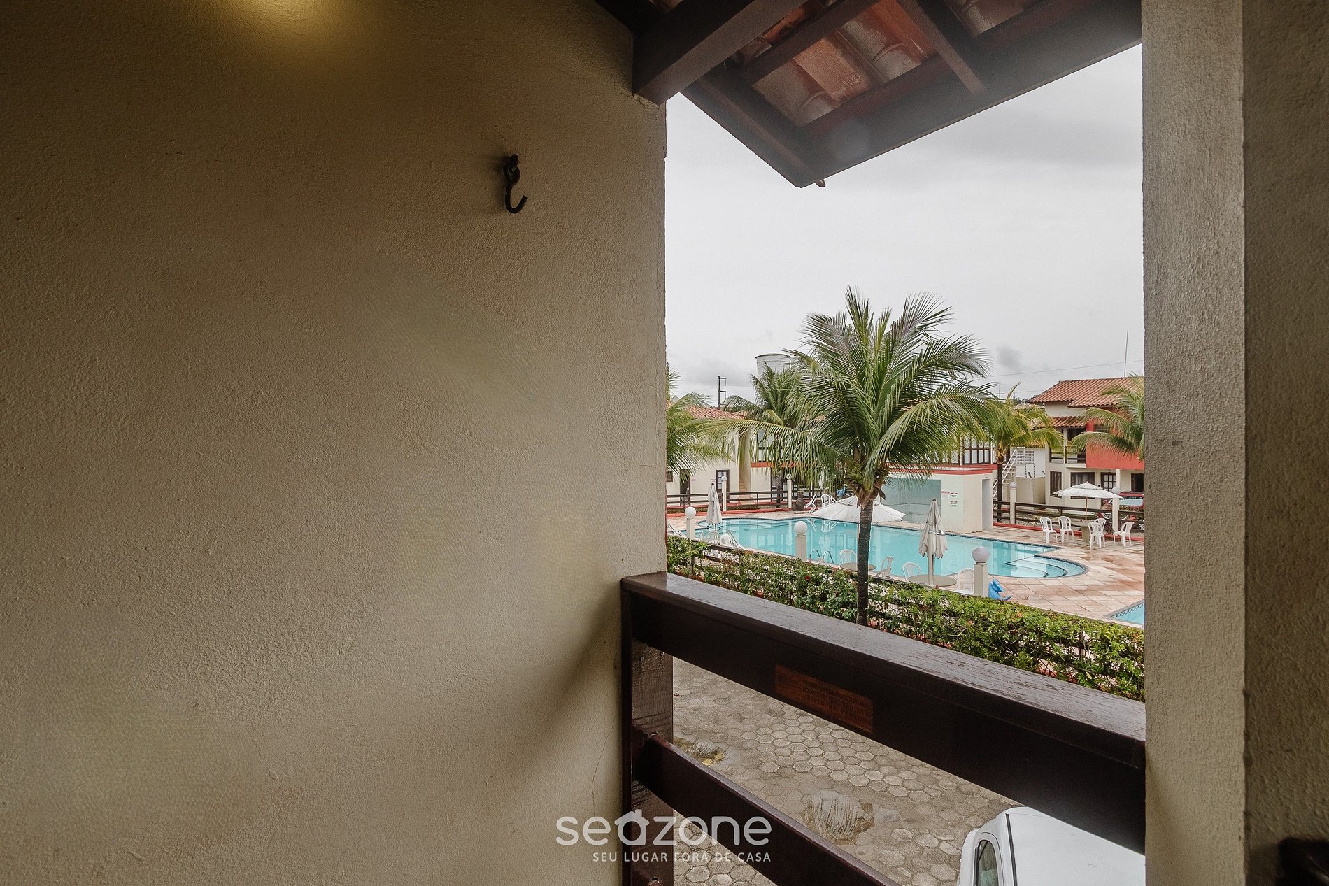 - 1 Suíte com cama king size, Smart Tv, armário, varanda com vista para a piscina, ventilador de teto e ar-condicionado;