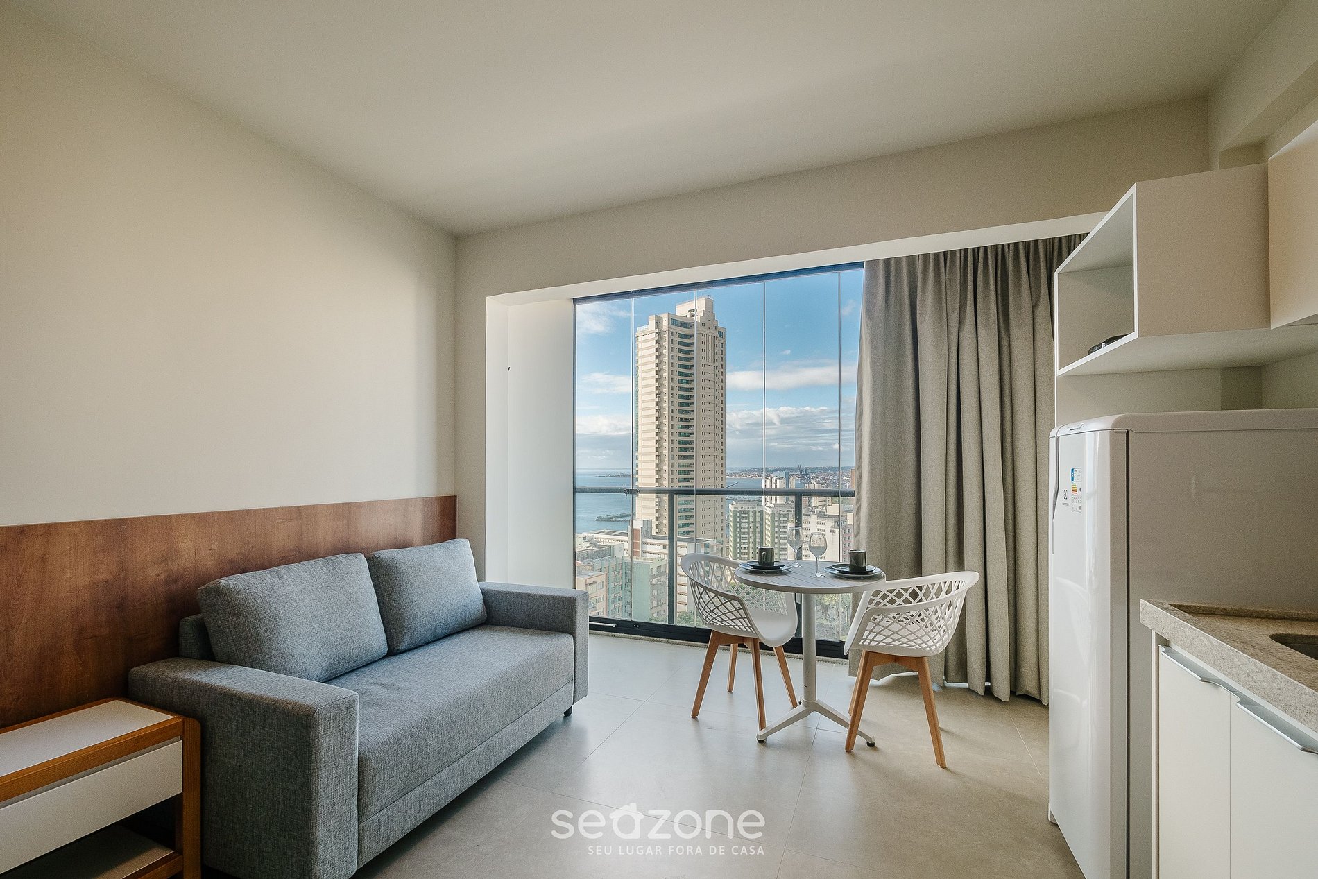 Este moderno studio oferece sofisticação e conforto. Aproveite a vista espetacular para o mar e a cidade enquanto desfruta de cama queen, Smart TV, sofá e cozinha equipada. O prédio conta com piscina, academia e coworking. Localização privilegiada, perto das melhores praias e restaurantes. Tudo para garantir uma estadia inesquecível.