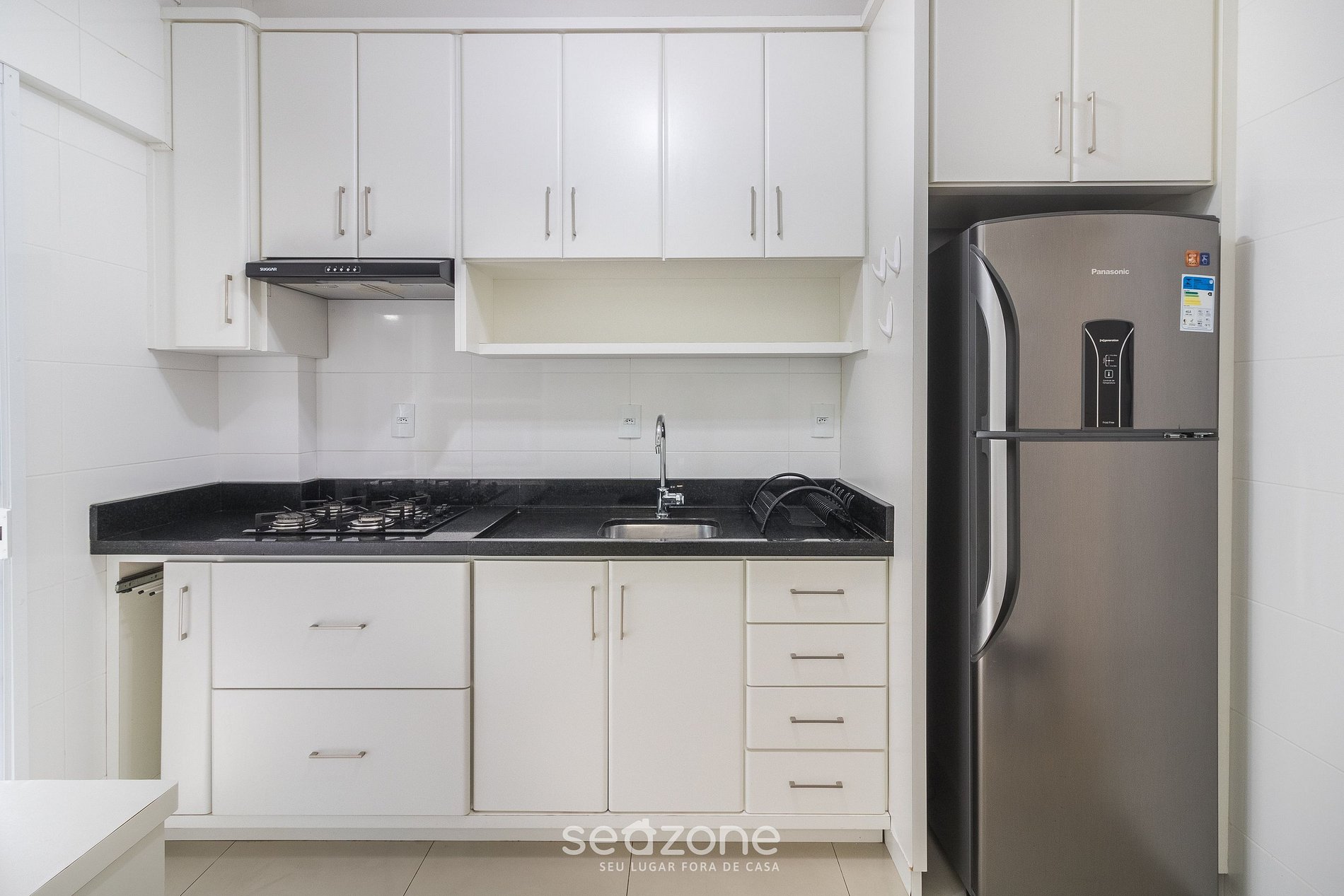- Cozinha completa com geladeira, fogão cooktop (gás), forno elétrico, airfryer, micro-ondas, sanduicheira, cafeteira elétrica, chaleira elétrica, taças de vinho, panelas, louças e utensílios;