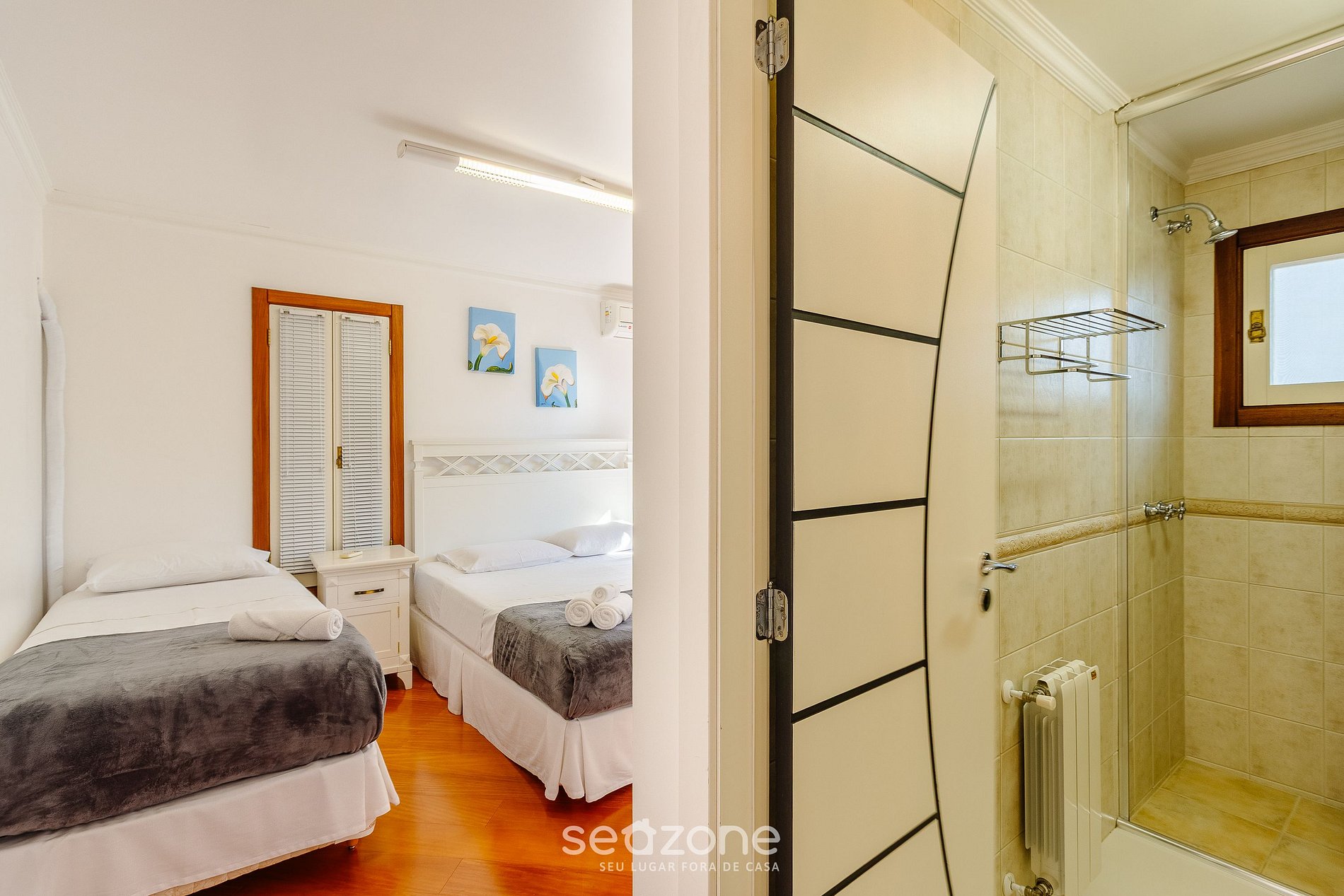 - Roupas de cama/banho e limpeza extras são solicitadas e pagas à parte, direto com a Seazone;