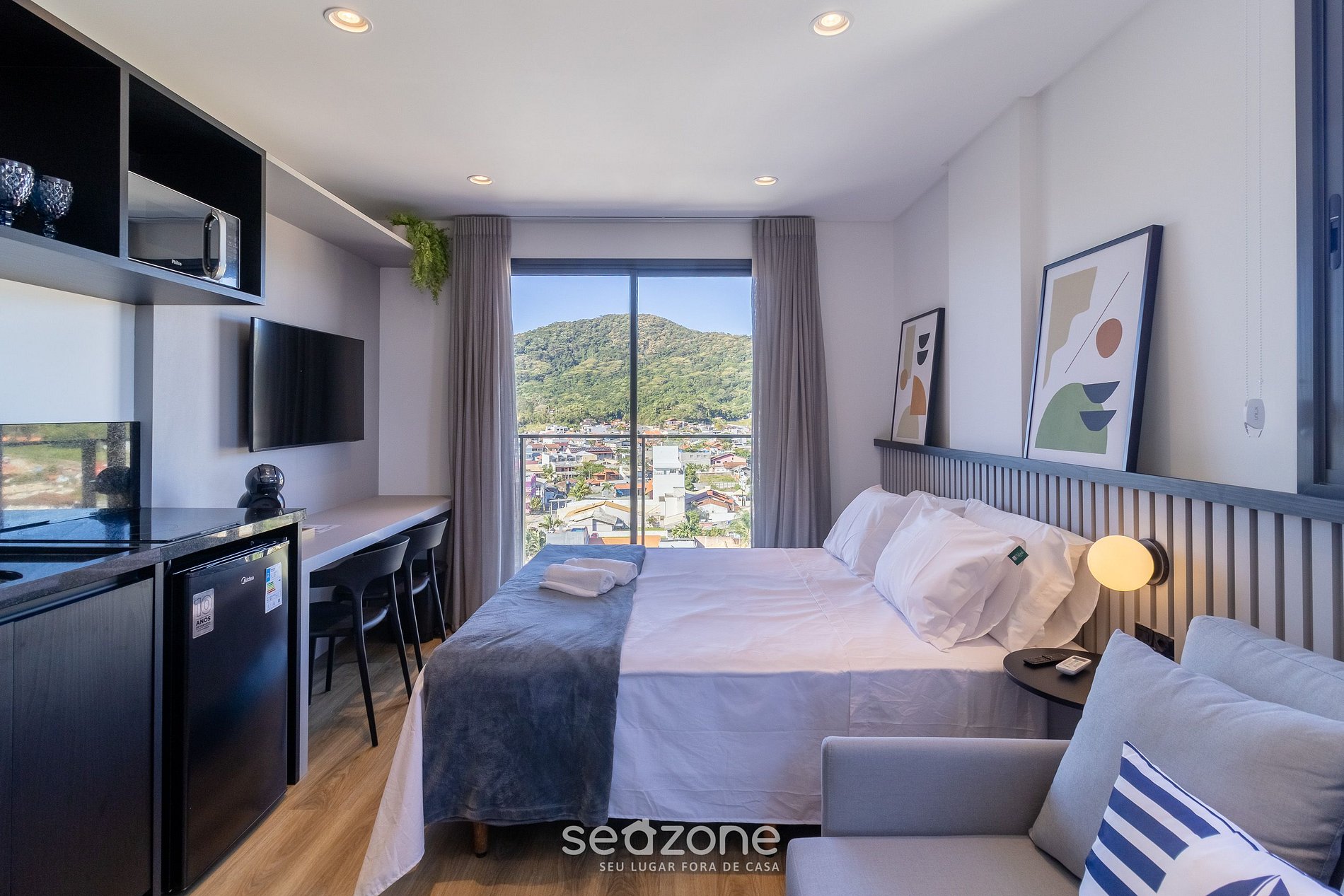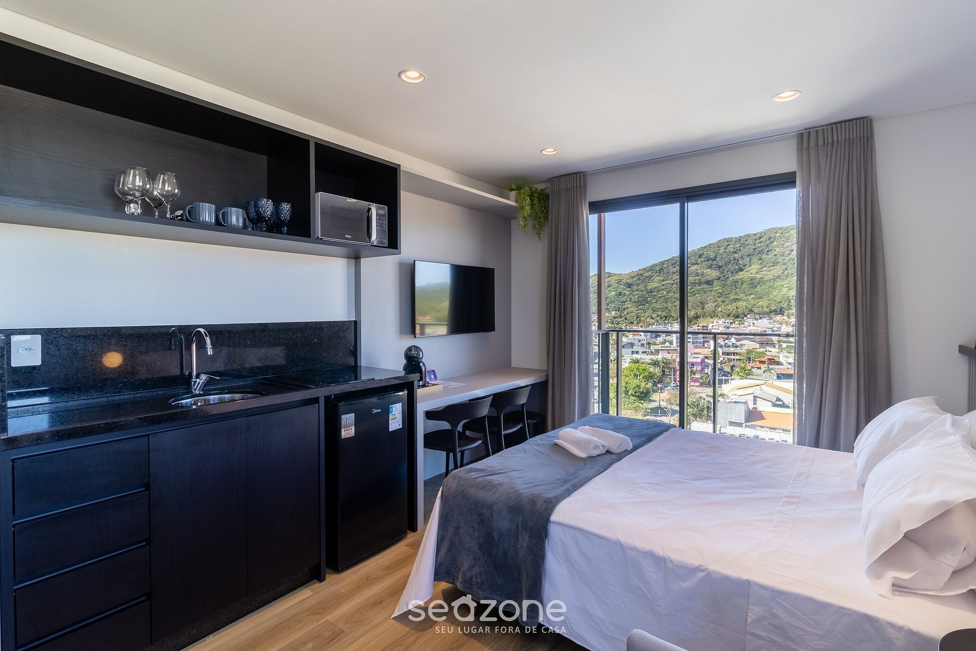 - Roupas de cama e banho de qualidade hoteleira (roupas de cama e toalhas extras são cobrados pela Seazone);