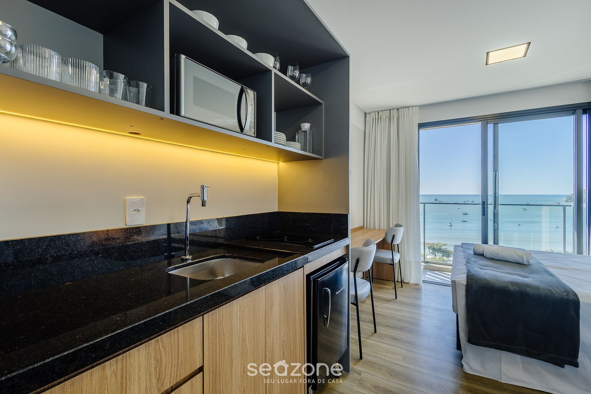 - Roupas de cama e banho de qualidade hoteleira (roupas de cama e toalhas extras são cobrados pela Seazone);