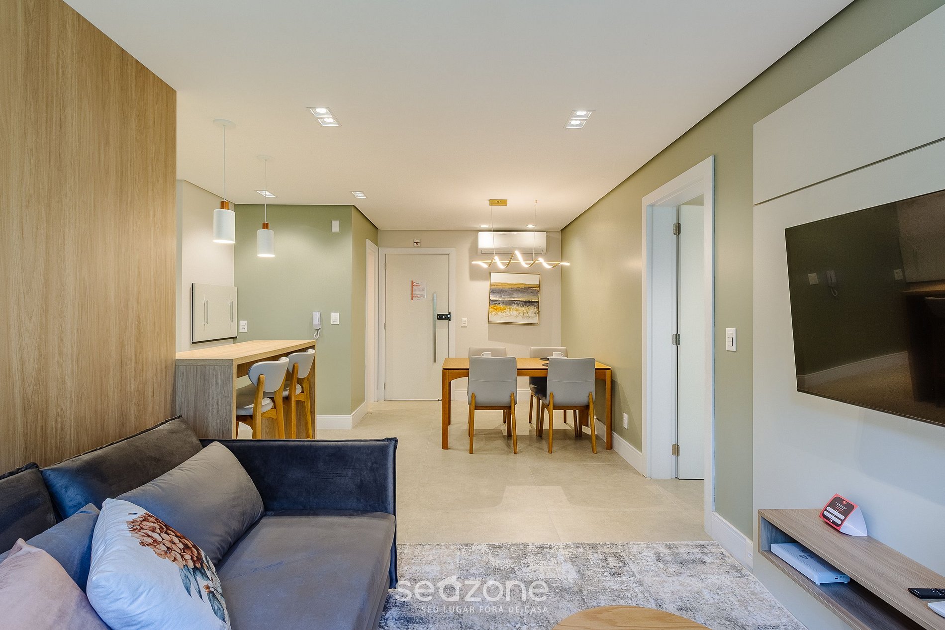 - Sala de estar com sofá-cama de casal, Smart TV e ar-condicionado;
