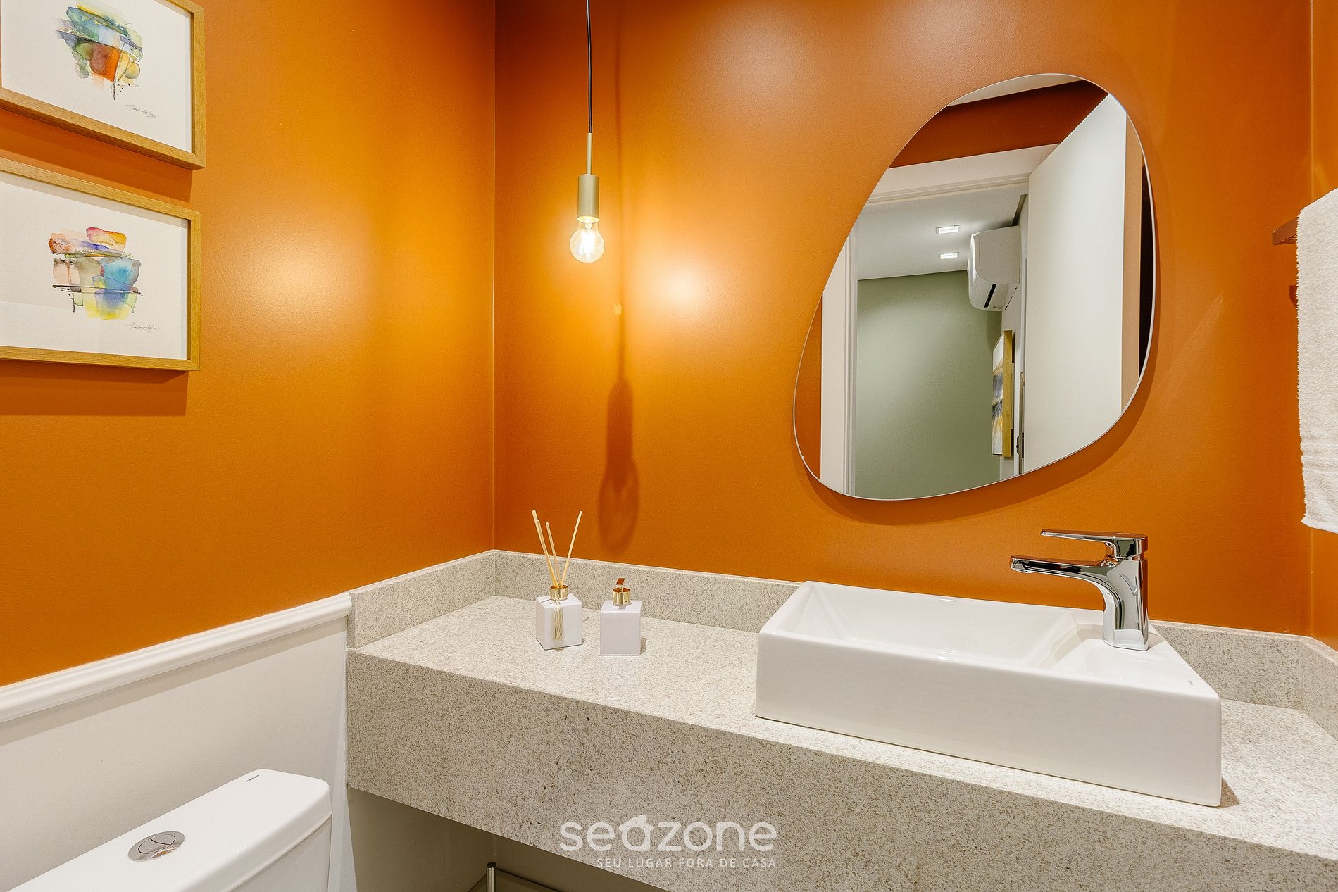 - Roupas de cama/banho e limpeza extras são solicitadas e pagas à parte, direto com a Seazone;