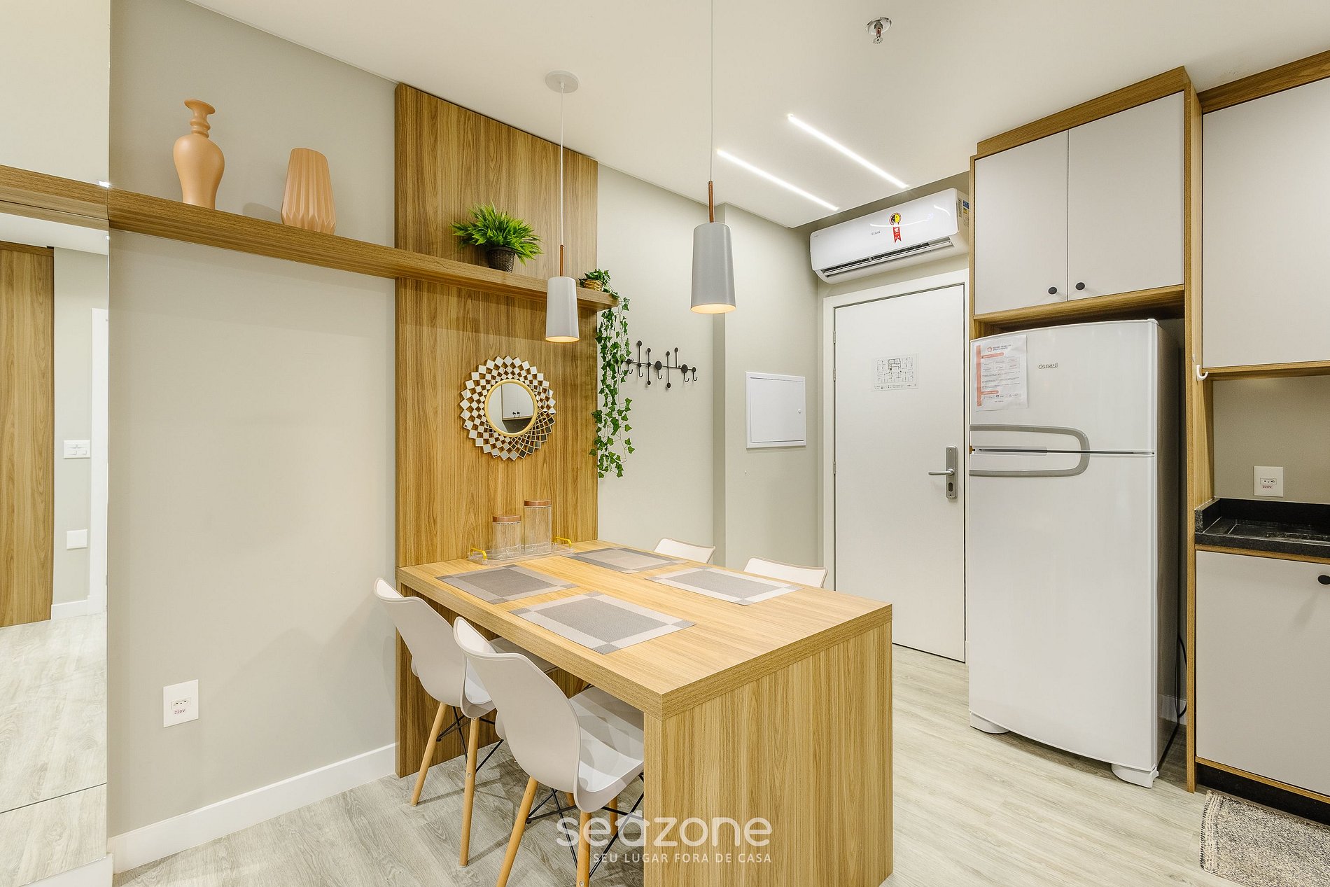 - Espaço para jantar com mesa e cadeiras;