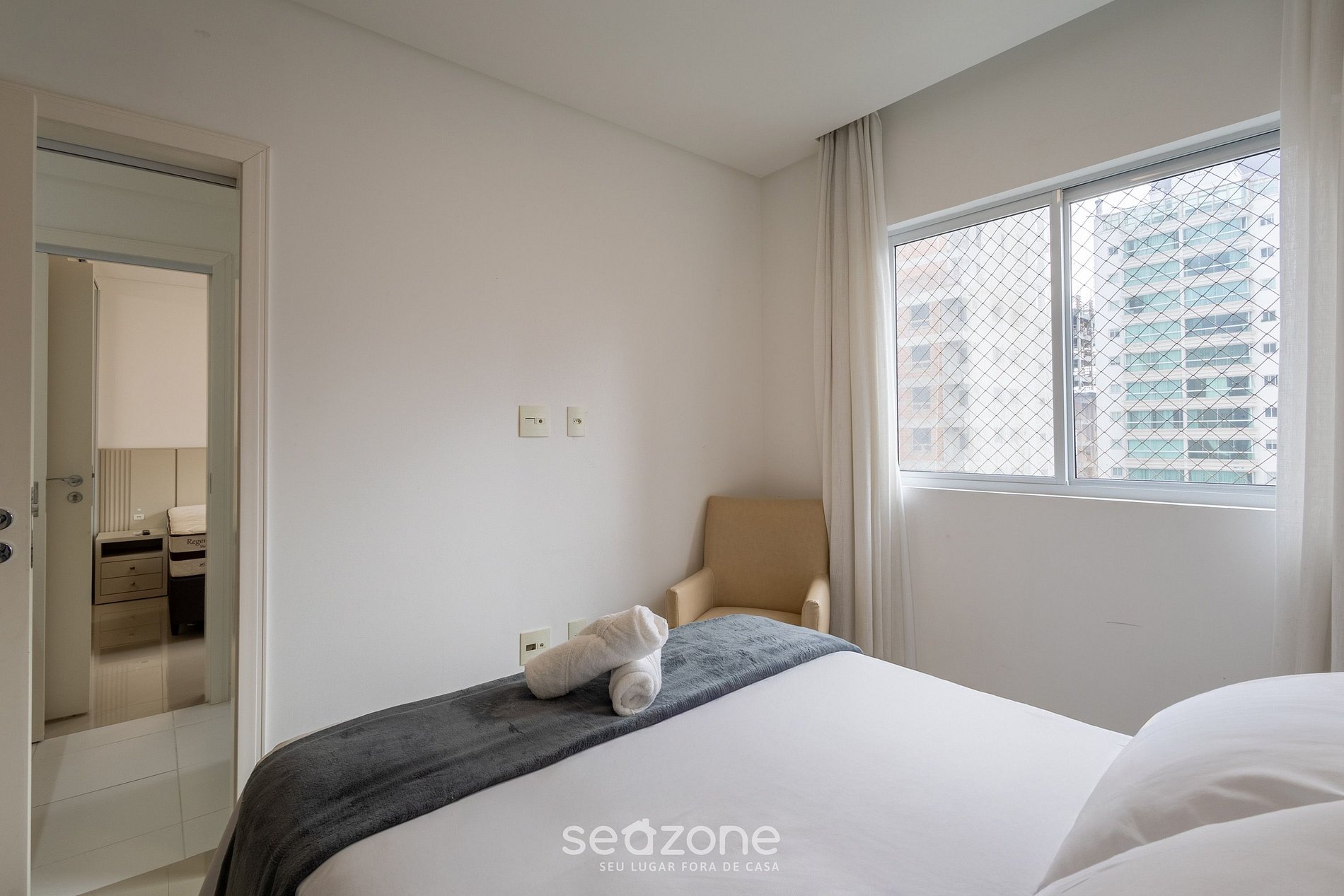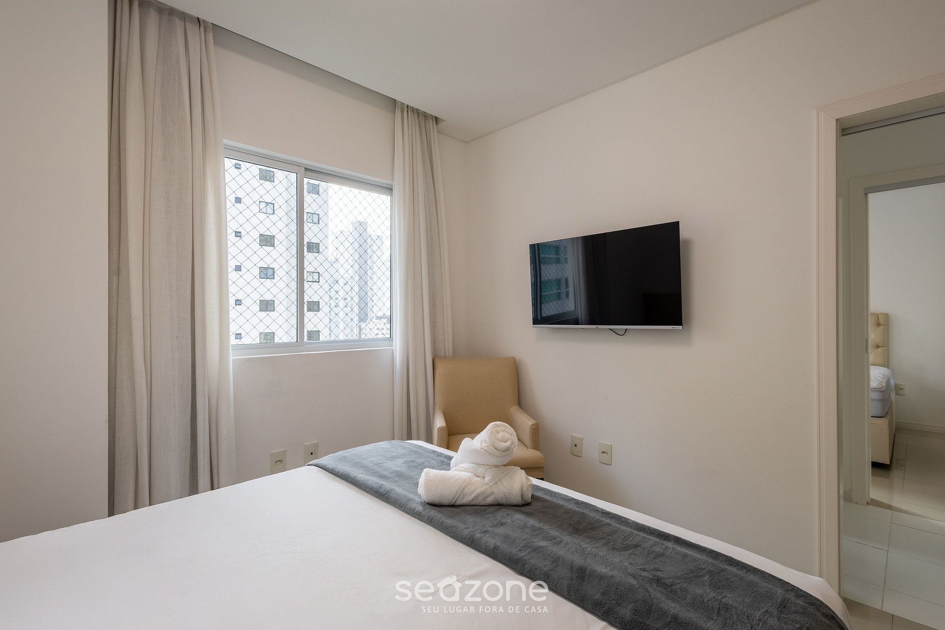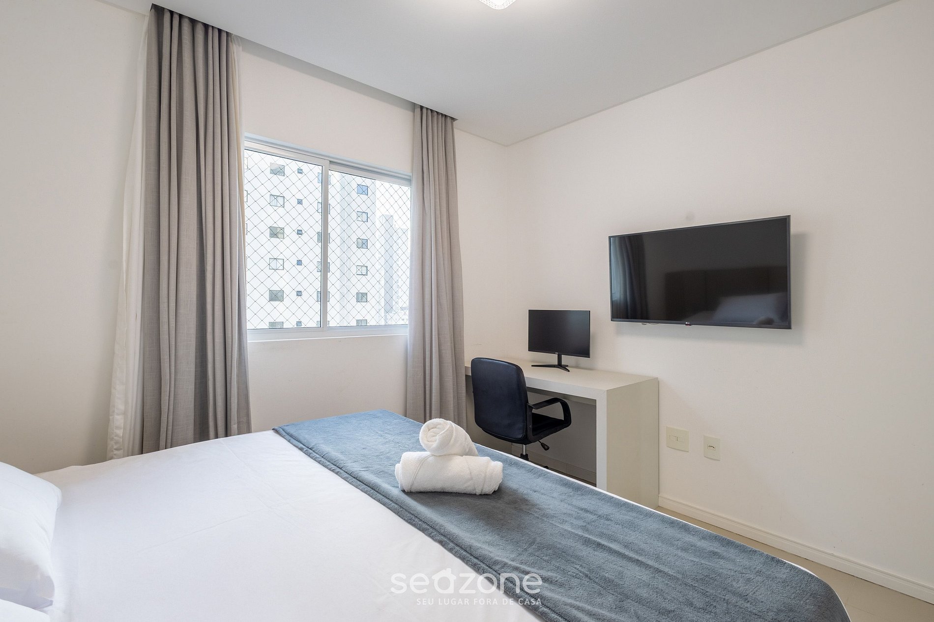 - Roupas de cama e banho de qualidade hoteleira (itens extras são cobrados pela Seazone);