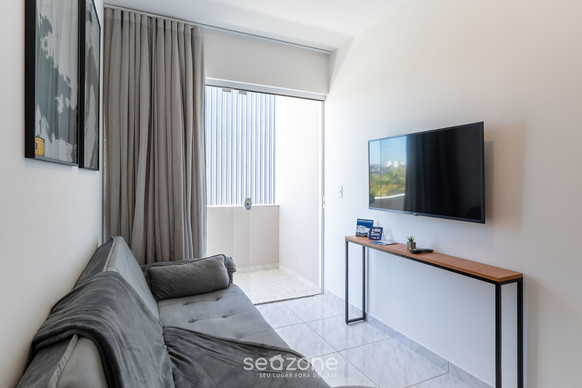 - Sala de estar com sofá cama de solteiro, Smart TV de tela plana e ar-condicionado;