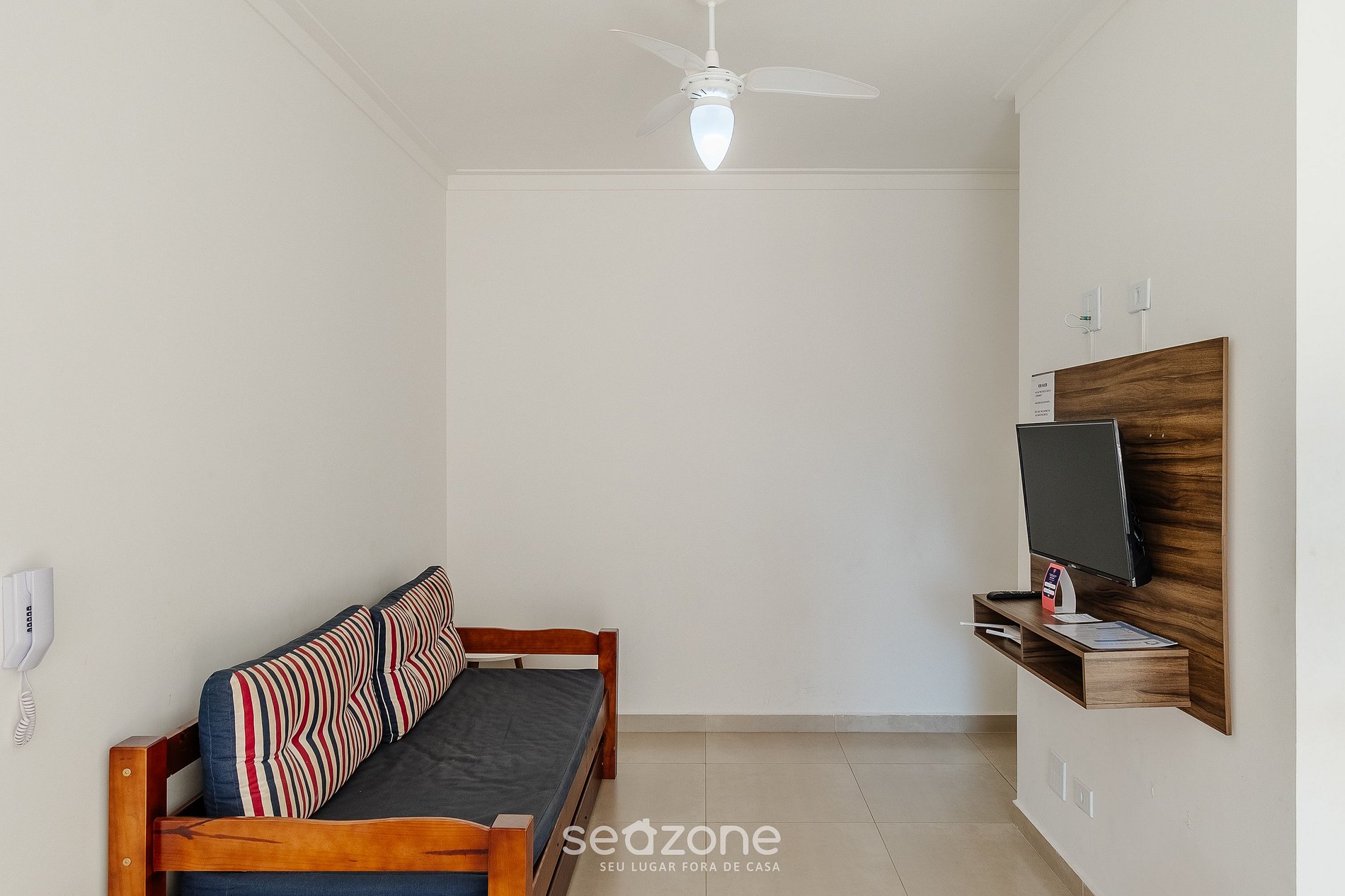 - Sala de estar com sofá-cama de solteiro e TV de tela plana;