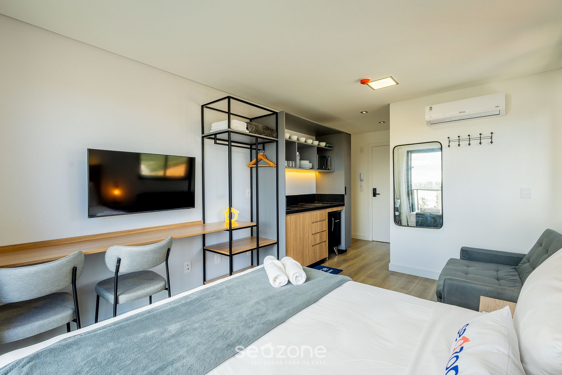 Nossos estúdios são pensados para oferecer o máximo de conforto e praticidade, garantindo que sua estadia em Penha seja leve e memorável.