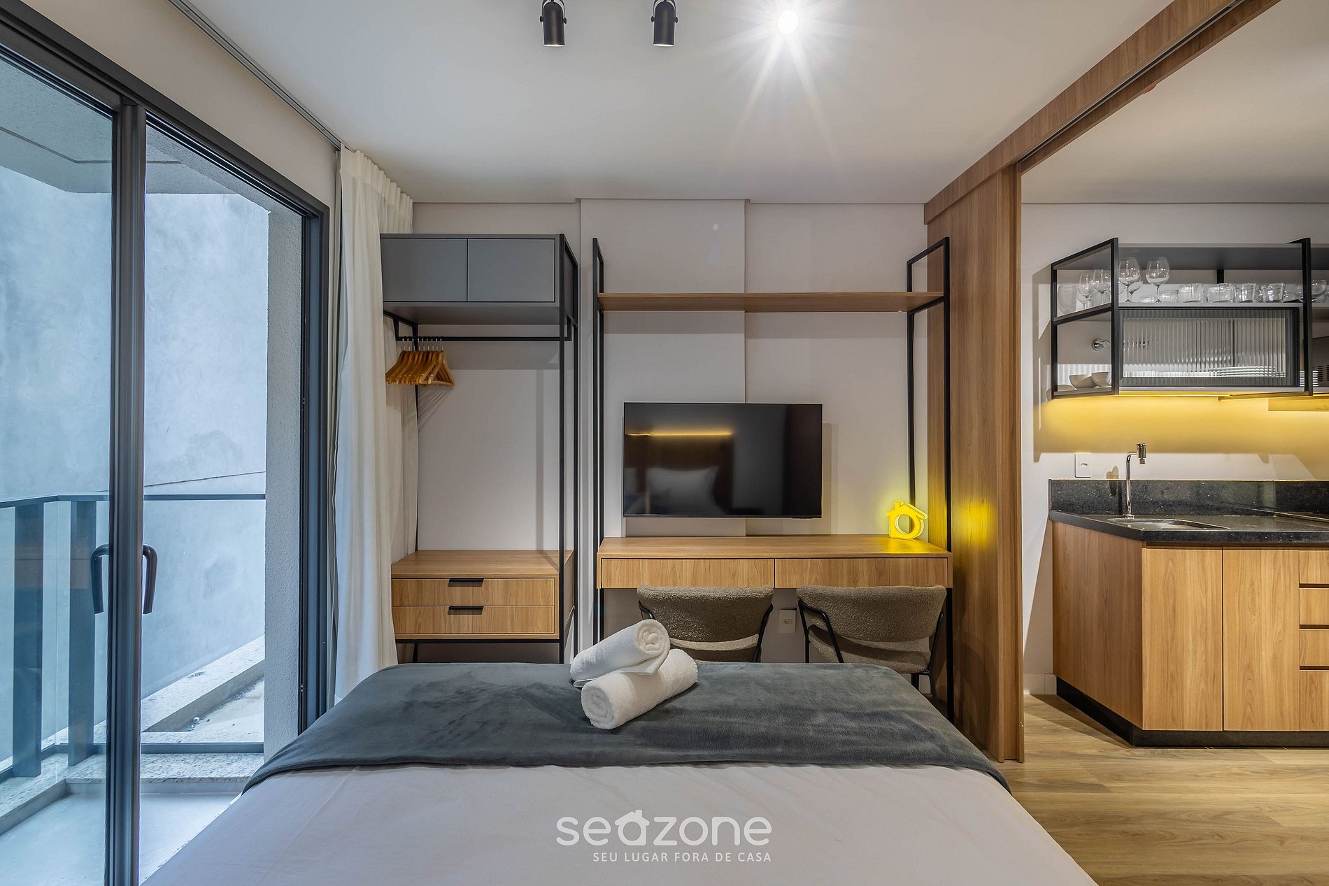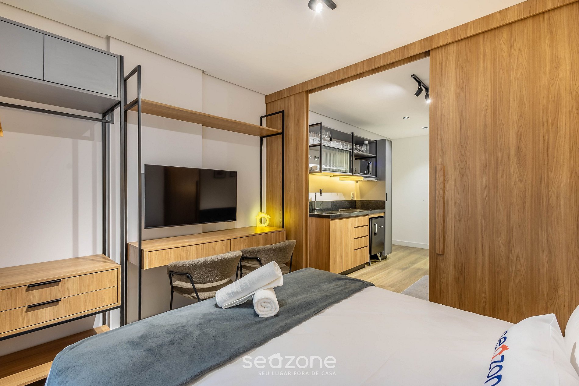 - Roupas de cama e banho de qualidade hoteleira (roupas de cama e toalhas extras são cobrados pela Seazone);