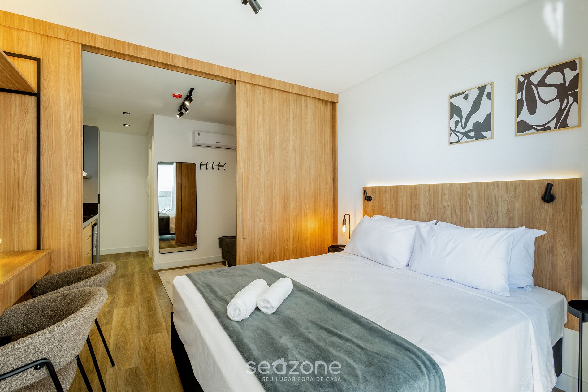 - Roupas de cama e banho de qualidade hoteleira (roupas de cama e toalhas extras são cobrados pela Seazone);