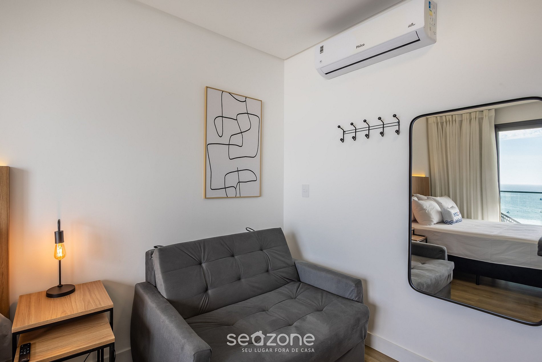 Exclusividade e conforto esperam por você neste studio completo, beira-mar, em Penha.