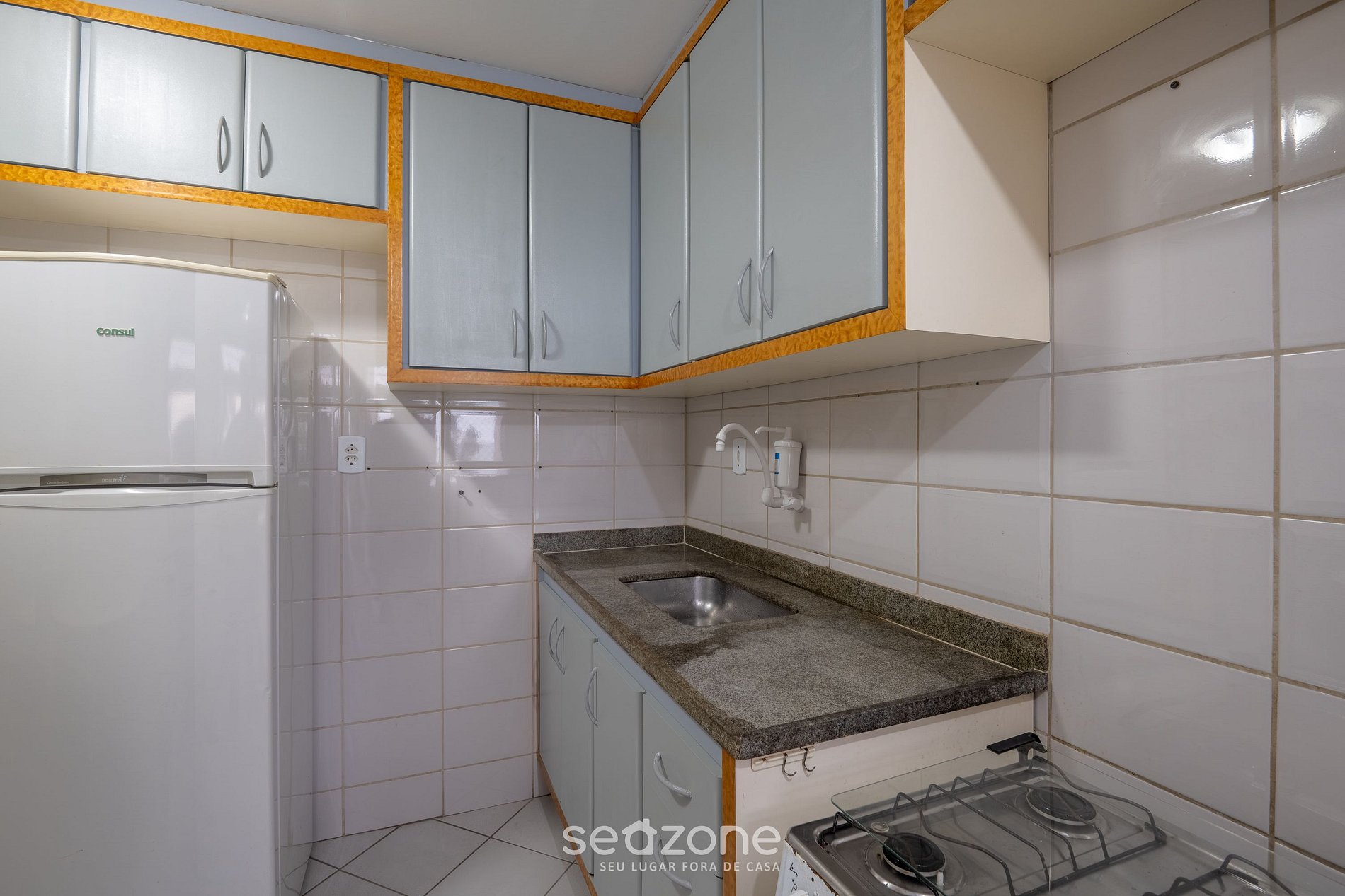 - Cozinha completa com geladeira, fogão e forno à gás, microondas, sanduicheira, Kit café (suporte para filtro, garrafa térmica), chaleira comum, liquidificador, panelas, louças e utensílios;