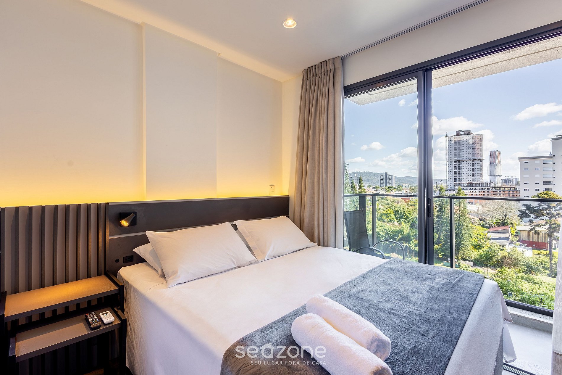 Desfrute de uma estadia exclusiva em um studio moderno, completo e acolhedor. Acomode-se com cama queen, sofá-cama, cozinha equipada e varanda com vista parcial do mar. As áreas comuns do prédio contam com piscina de borda infinita e área de convivência no rooftop. A localização é estratégica, a apenas 50 metros da praia e perto do Beto Carrero World.