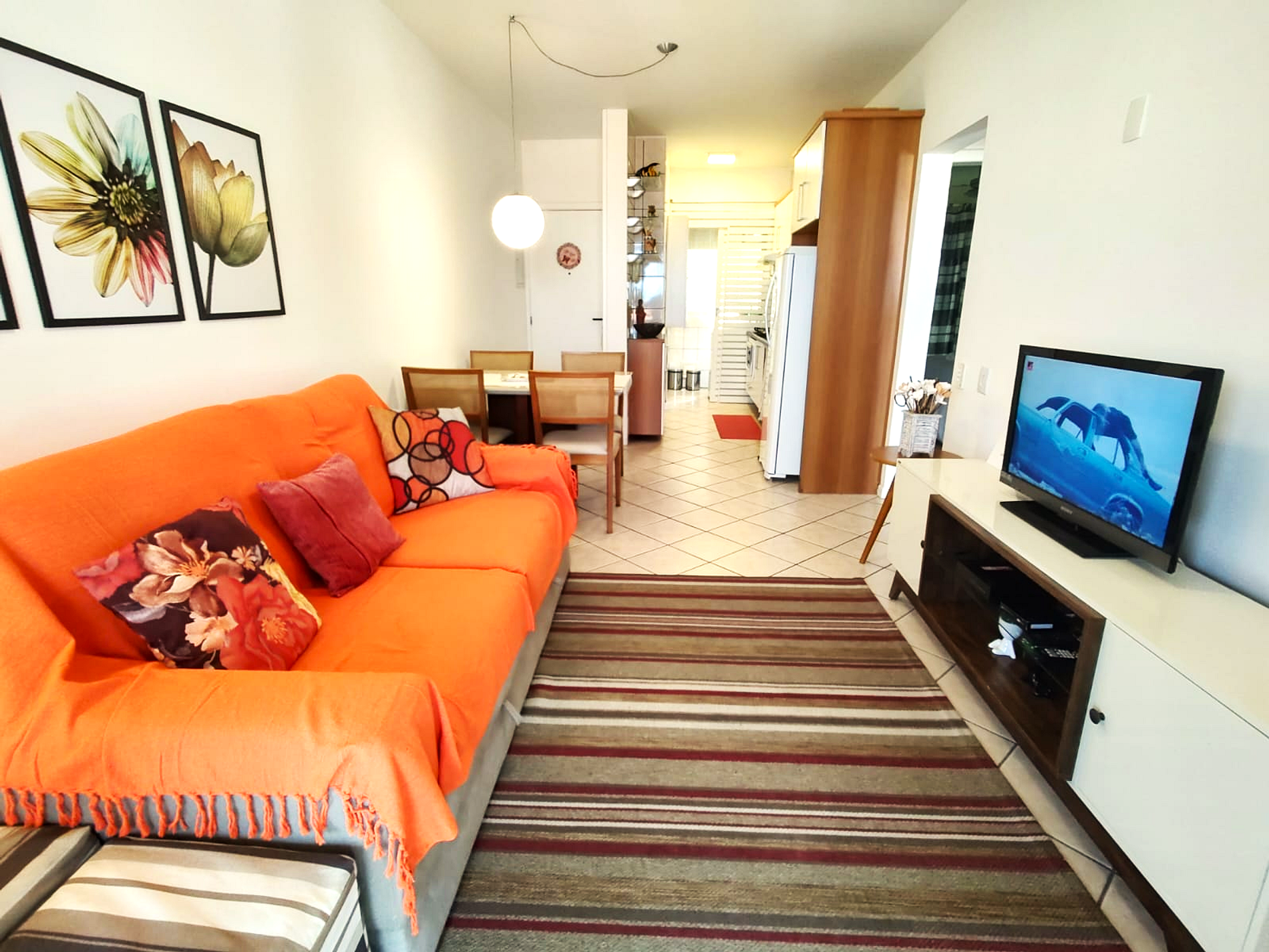 - Sala de estar com sofá (trocado recentemente, oferecendo muito mais conforto) e TV de tela plana;