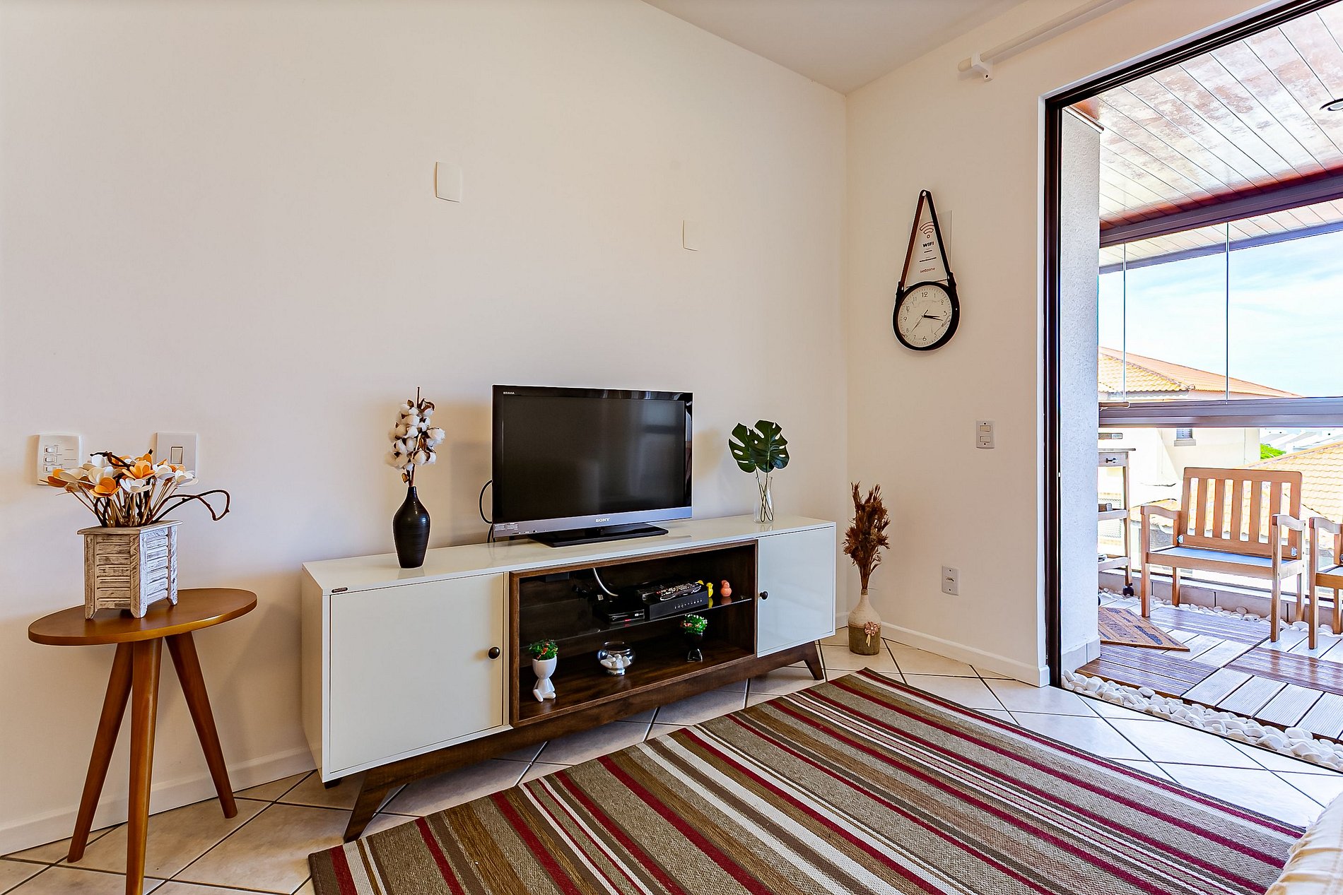 - Sala de estar com sofá (trocado recentemente, oferecendo muito mais conforto) e TV de tela plana;