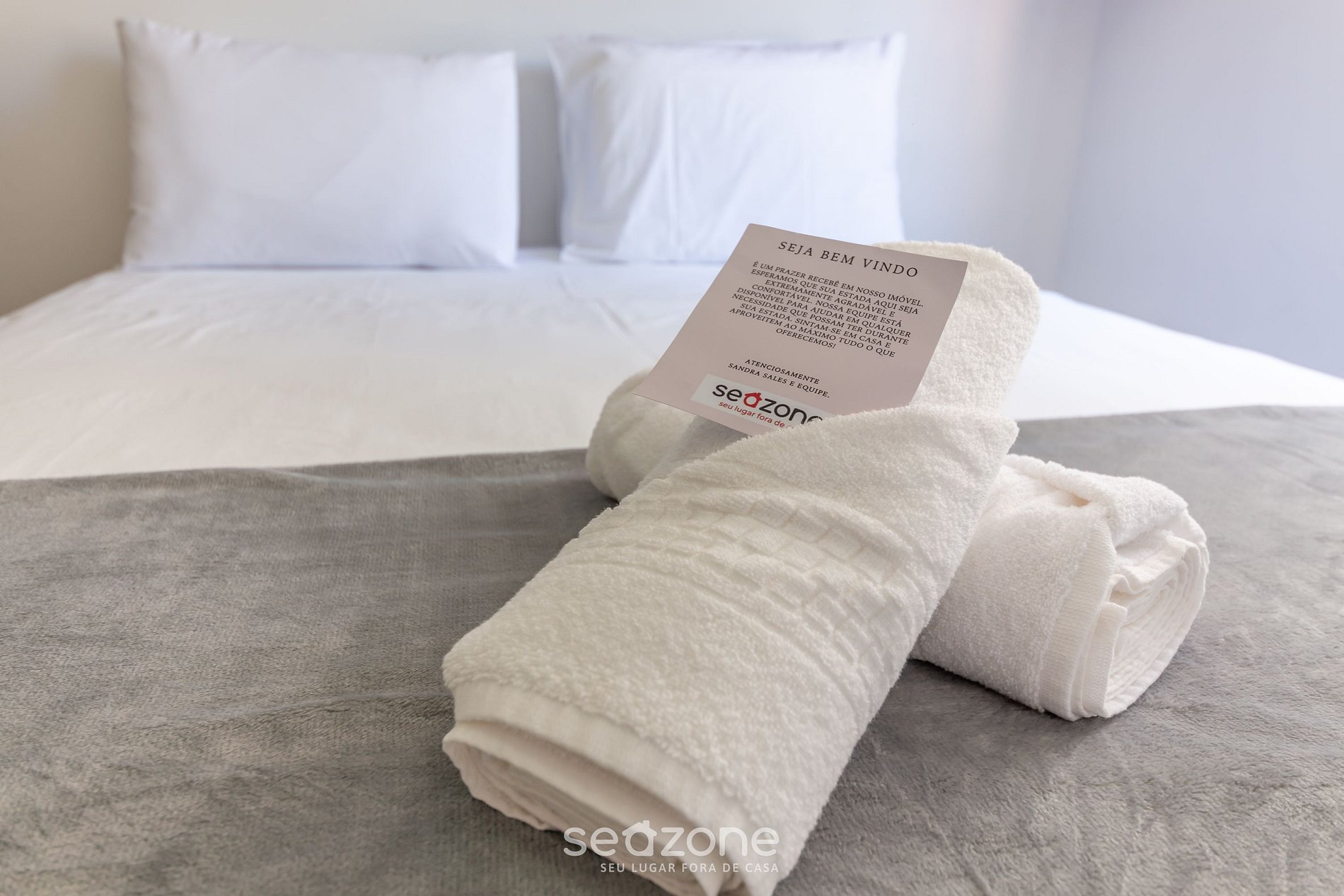- Roupas de cama/banho e limpeza extras são solicitadas e pagas à parte, direto com a Seazone;