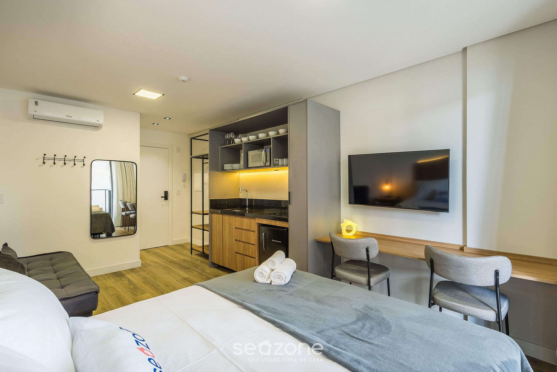 Nossos estúdios são pensados para oferecer o máximo de conforto e praticidade, garantindo que sua estadia em Penha seja leve e memorável.