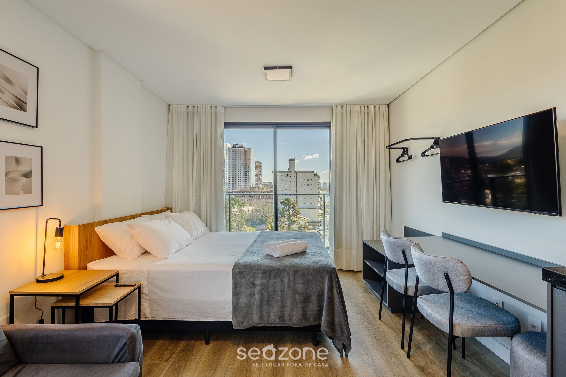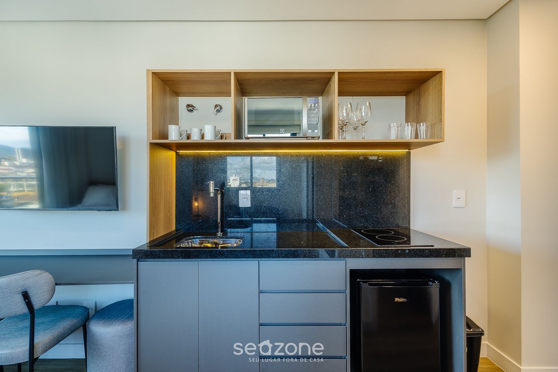 Descubra o conforto e a sofisticação deste moderno studio na Praia de Armação do Itapocorói.