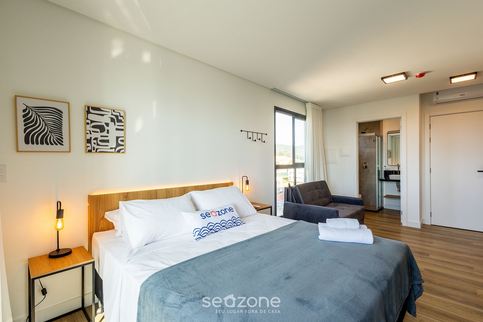 - Roupas de cama e banho de qualidade hoteleira (roupas de cama e toalhas extras são cobrados pela Seazone);