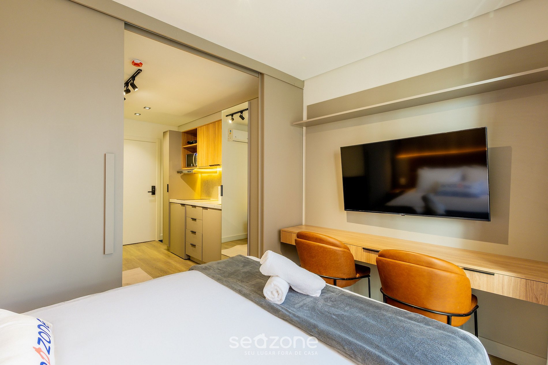 Nossos estúdios são pensados para oferecer o máximo de conforto e praticidade, garantindo que sua estadia em Penha seja leve e memorável.