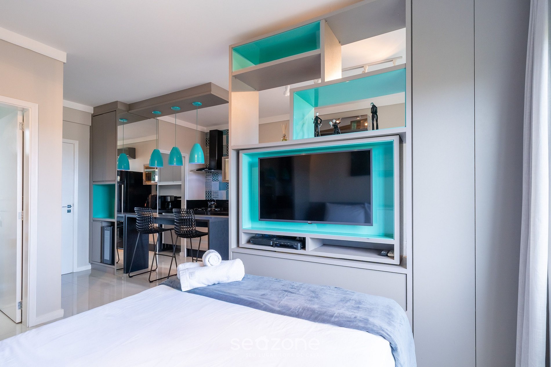- Roupas de cama e banho de qualidade hoteleira (roupas de cama e toalhas extras são cobrados pela Seazone);
