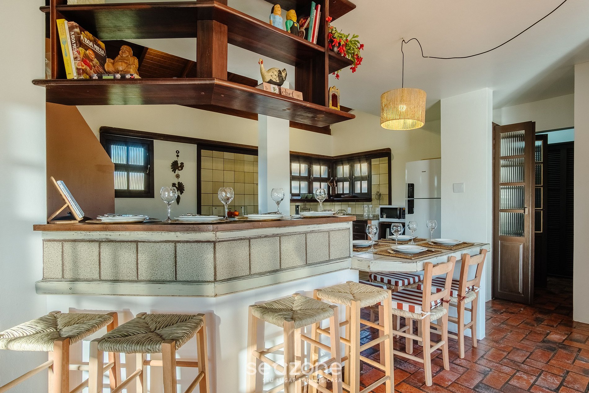 - Espaço para jantar com bancada, 4 cadeiras e 4 bancos;