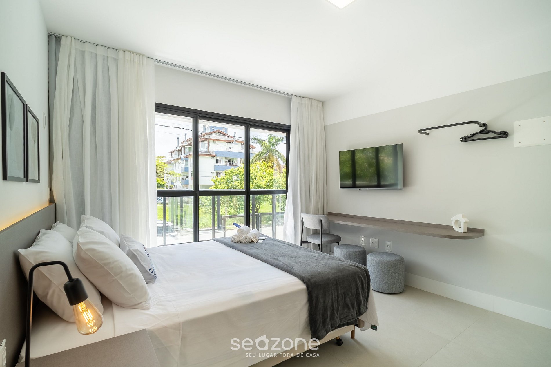 - Roupas de cama e banho de qualidade hoteleira (roupas de cama e toalhas extras são cobrados pela Seazone);