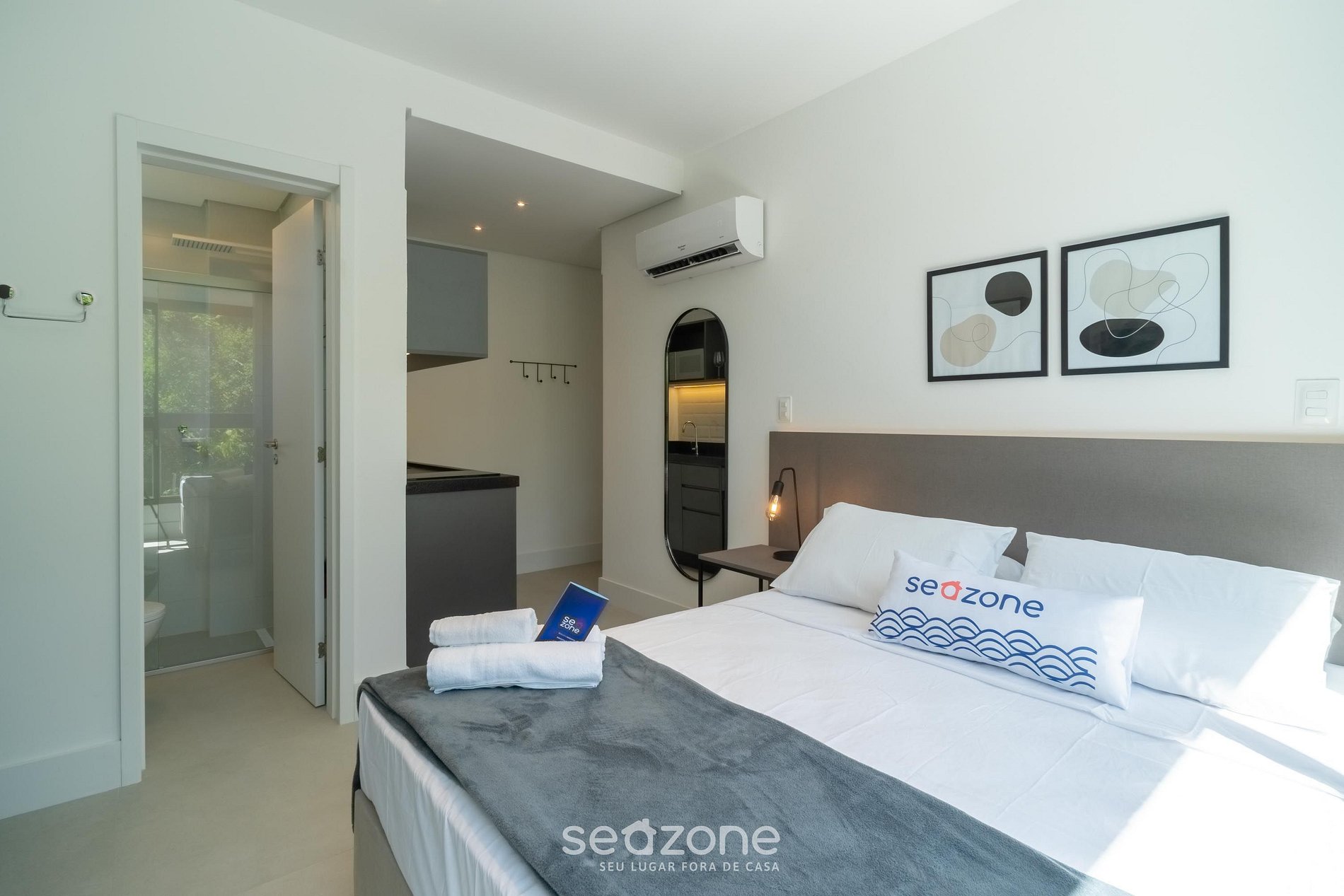 - Roupas de cama e banho de qualidade hoteleira (roupas de cama e toalhas extras são cobrados pela Seazone);