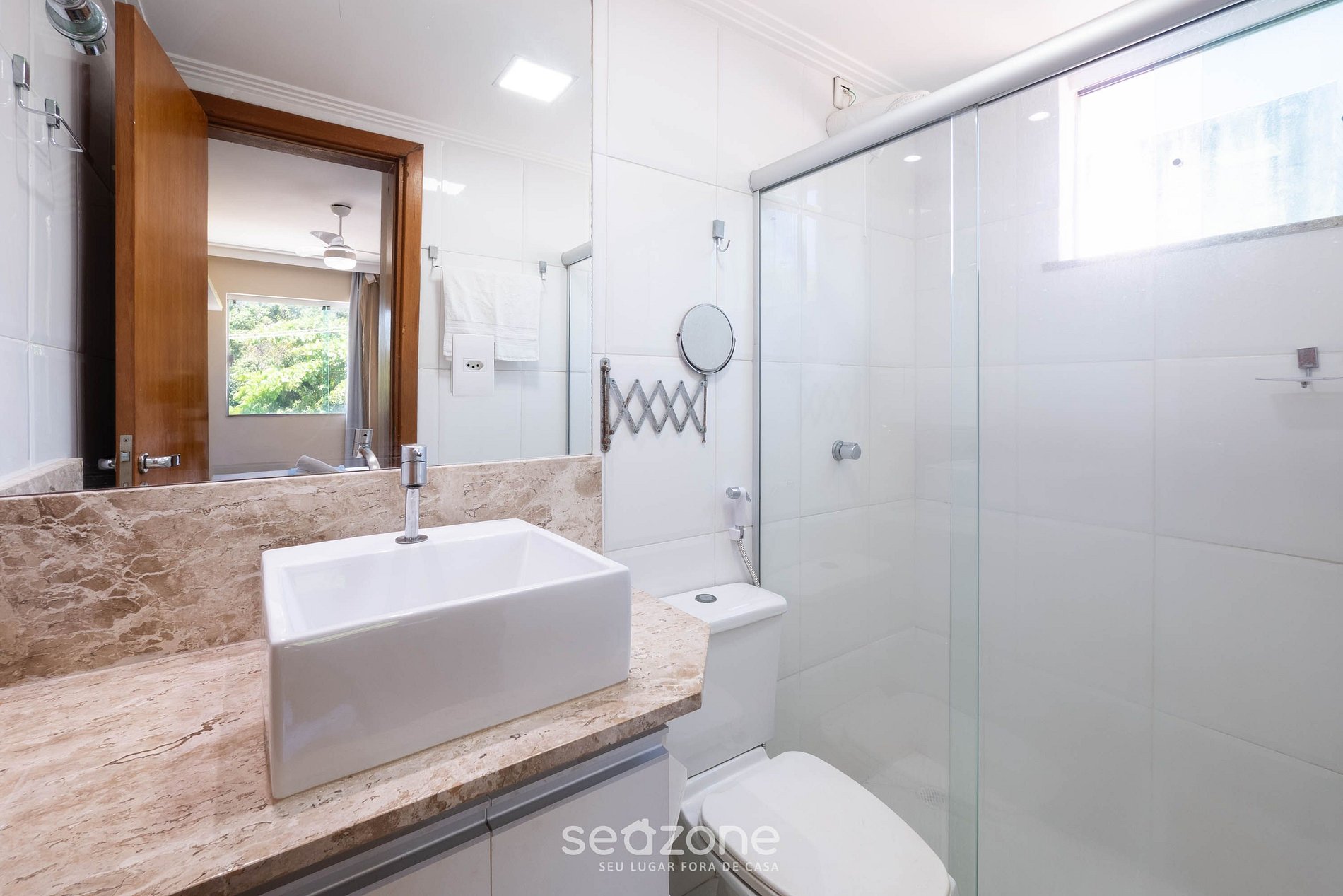 - Roupas de cama/banho e limpeza extras são solicitadas e pagas à parte, direto com a Seazone;