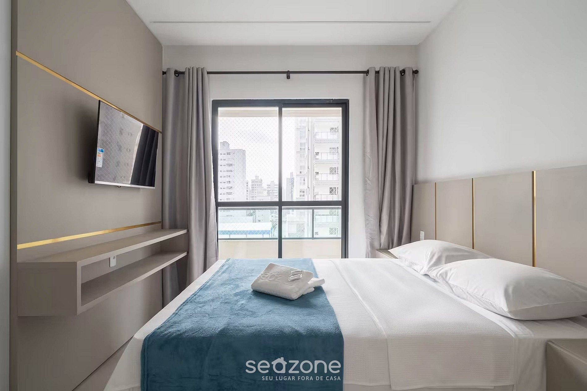 - Roupas de cama e banho de qualidade hoteleira (roupas de cama e toalhas extras são cobrados pela Seazone);